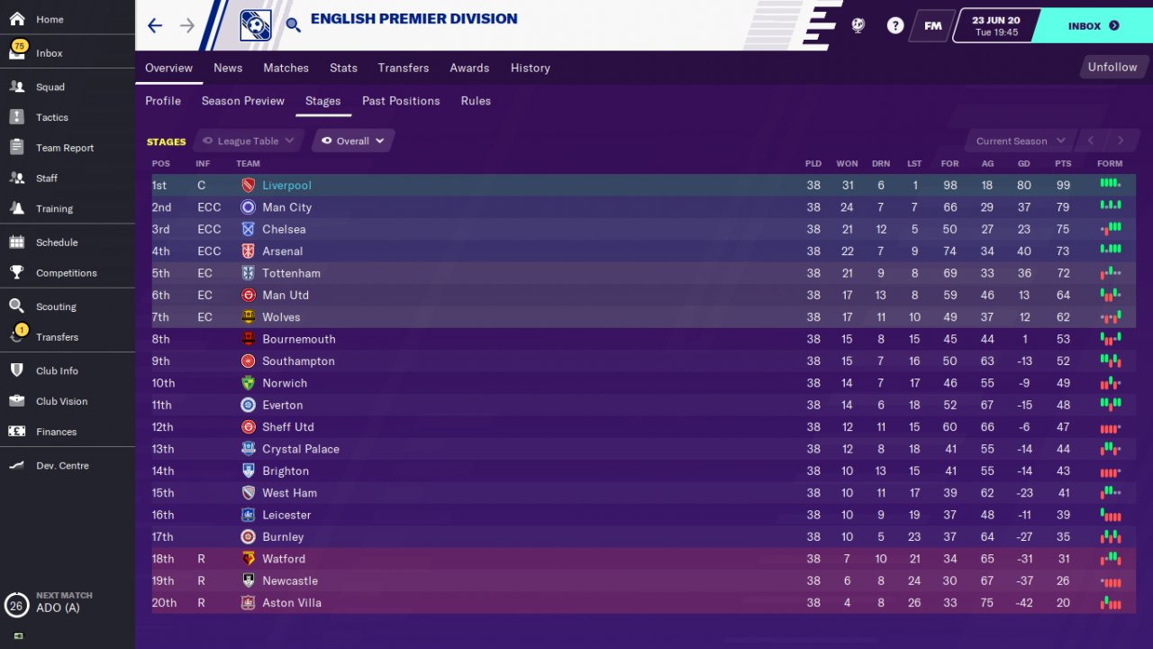 Liverpool take 99 points in Premier League.