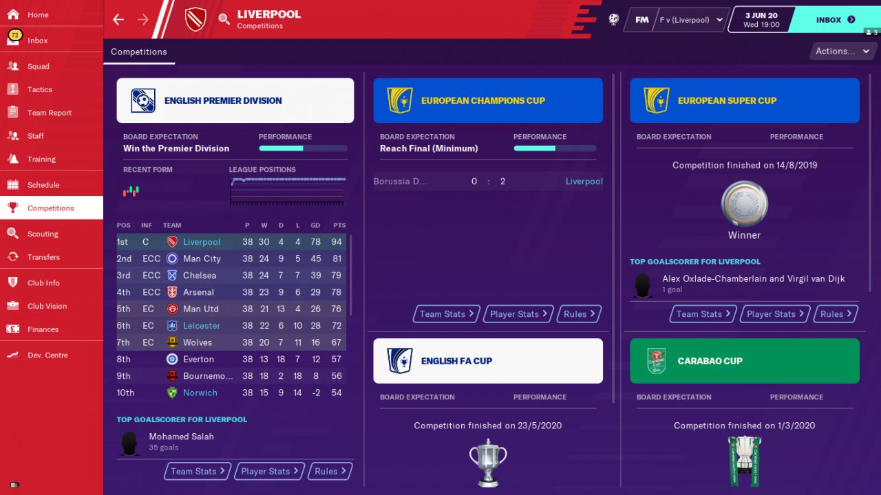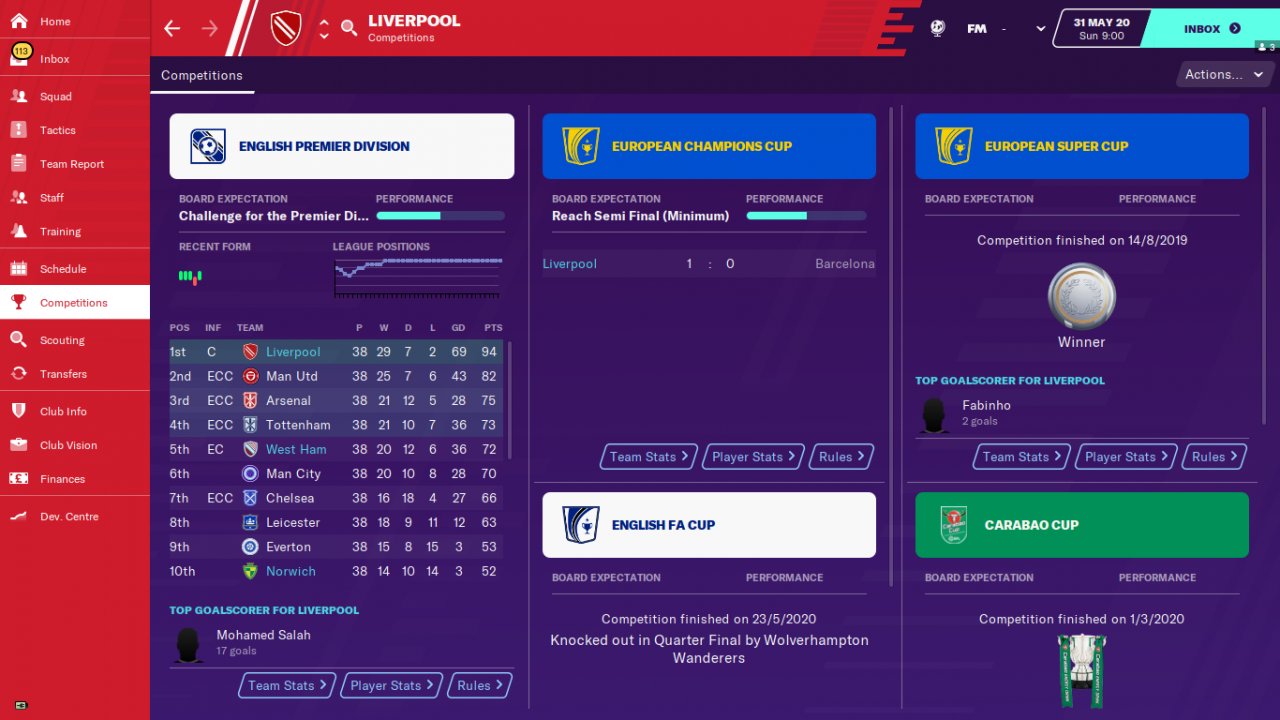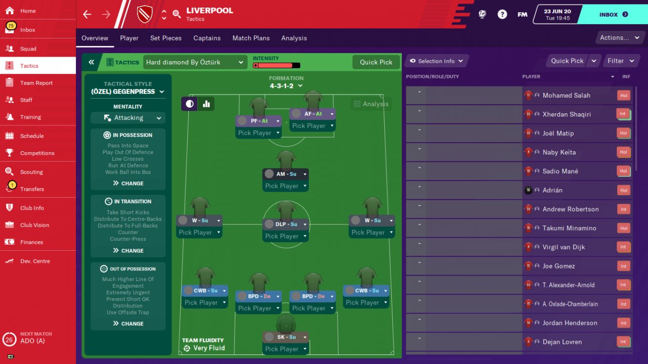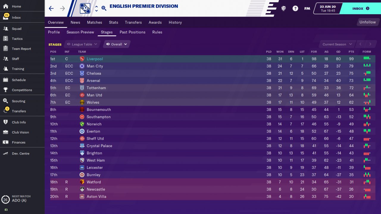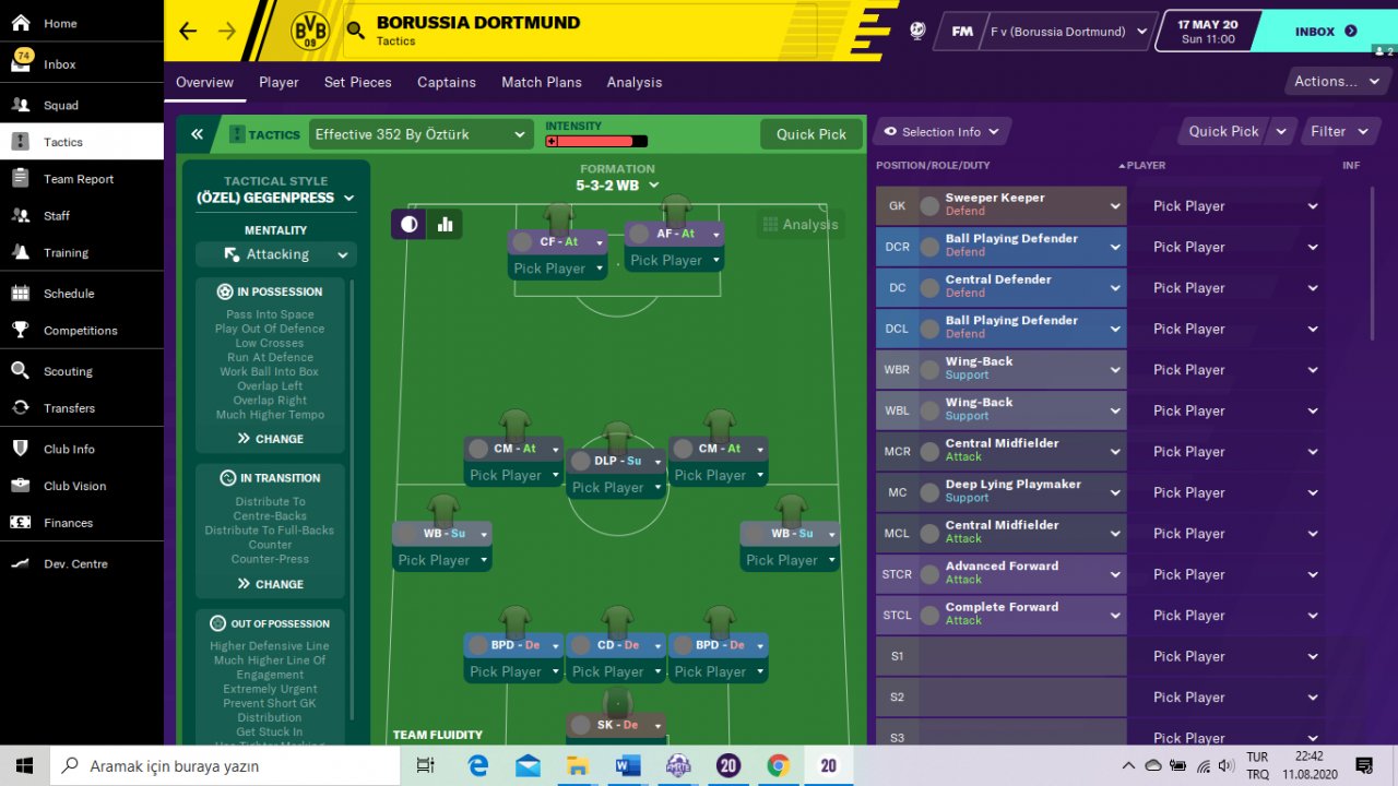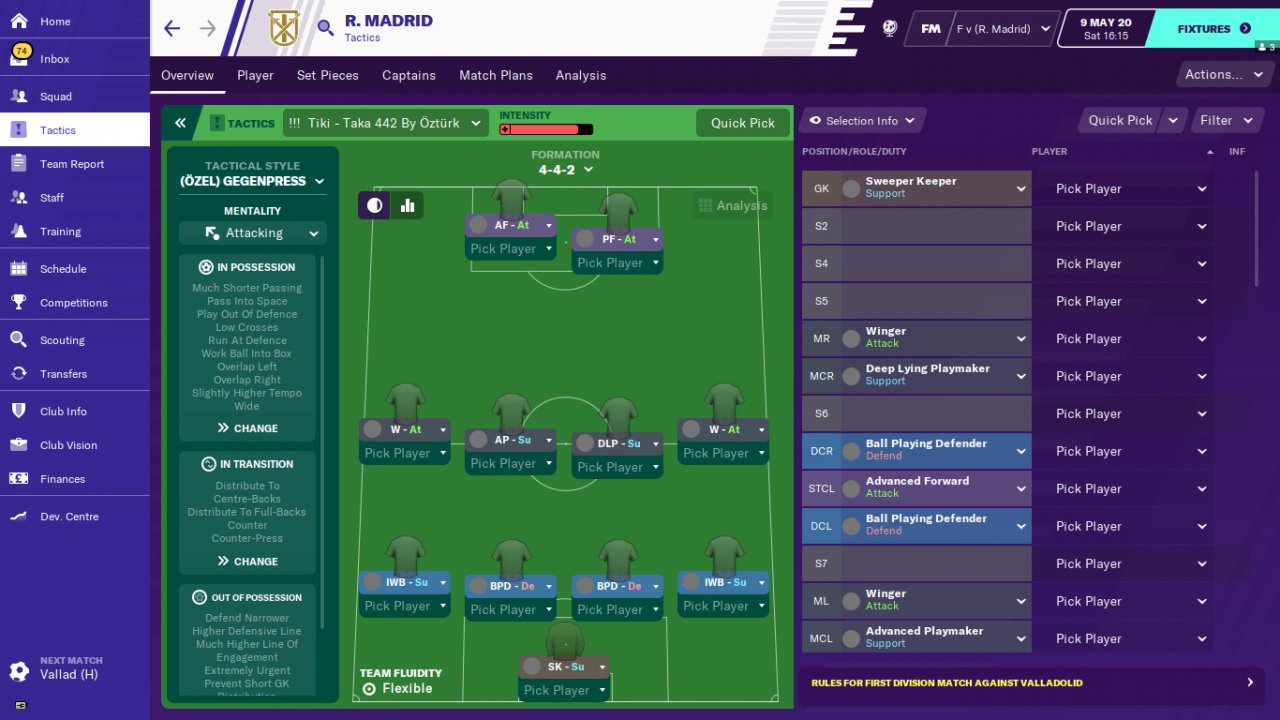 A friend of mine who plays FM 2020 reported that he won the World Cup with the Turkish national team with this tactic. In my trial , the tactic achieved incredible success with the teams of Real Madrid, Villareal and Leganes. Real Madrid have won all the trophies and amassed 106 points in the Spanish league. Villareal and leganes were far above expectations.