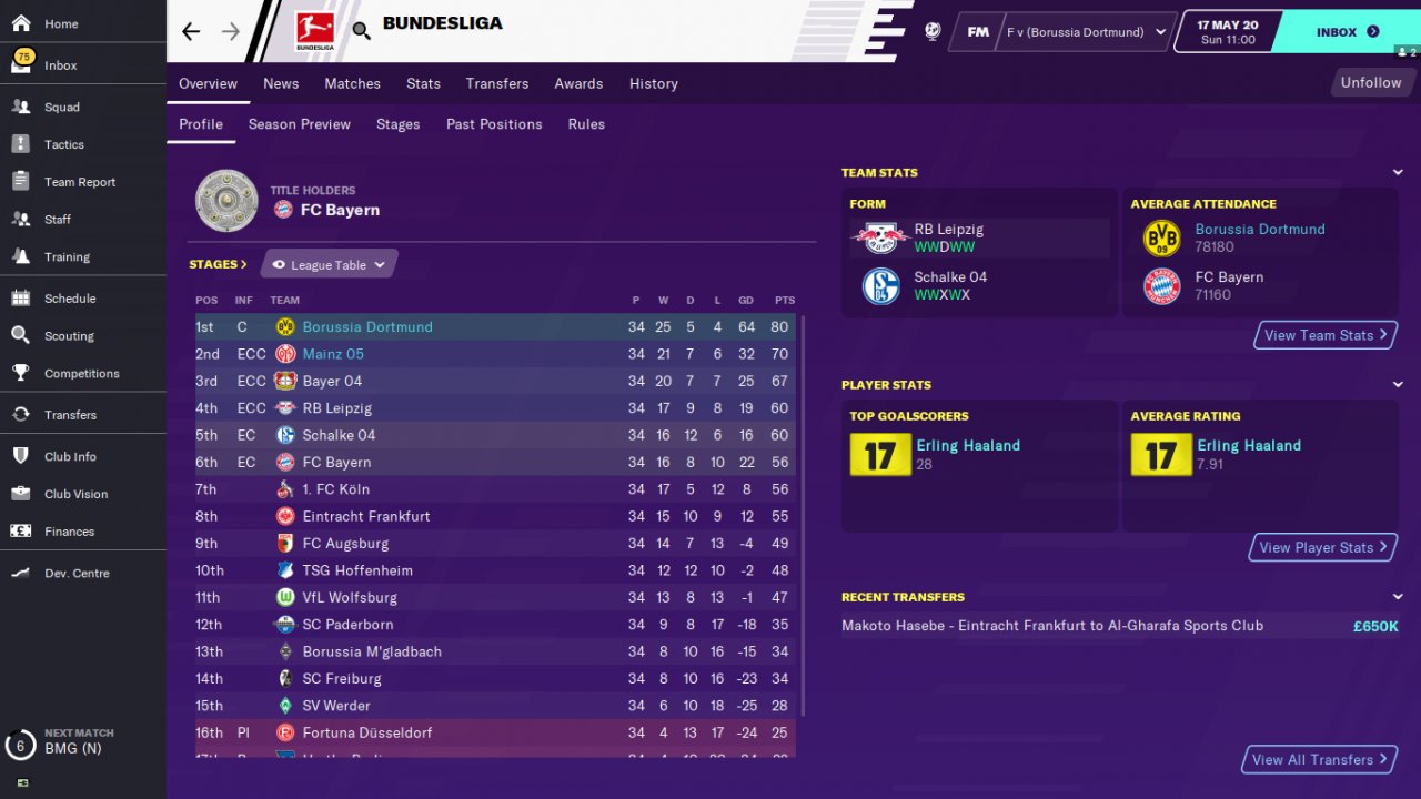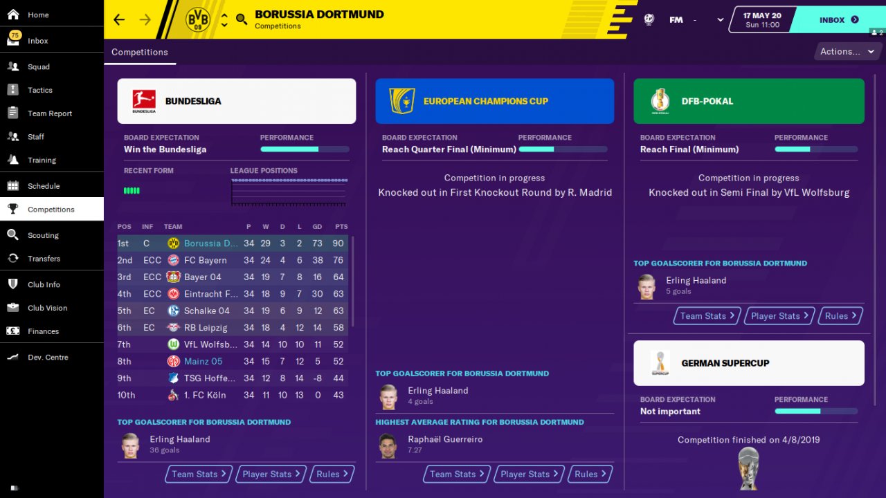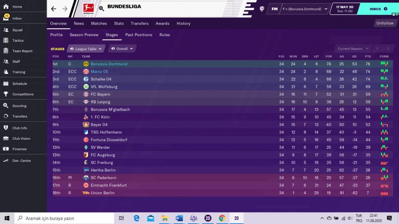 Bvb champion in bundesliga and mainz place 3. in bundesliga.