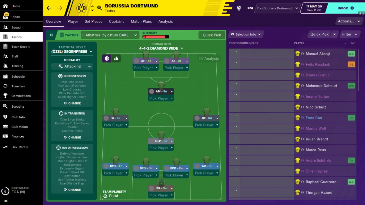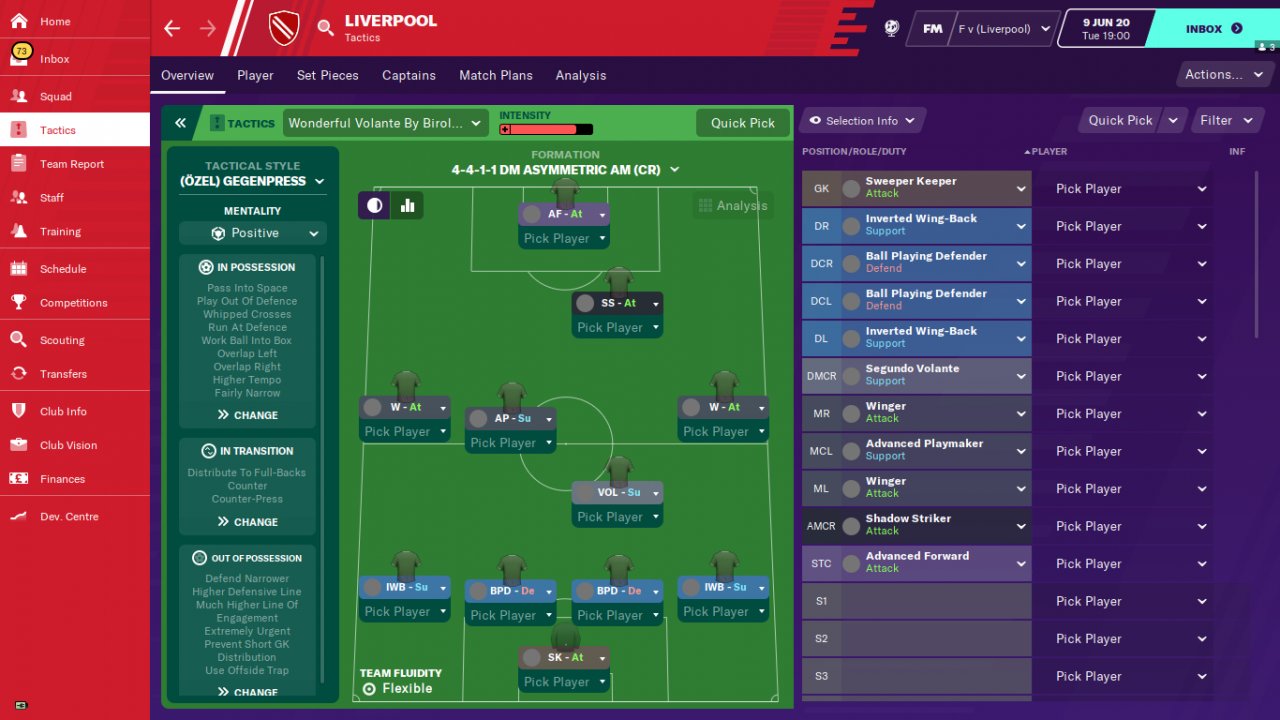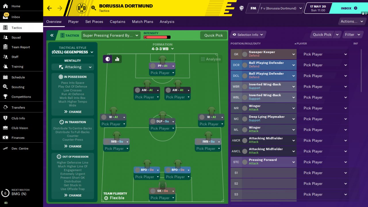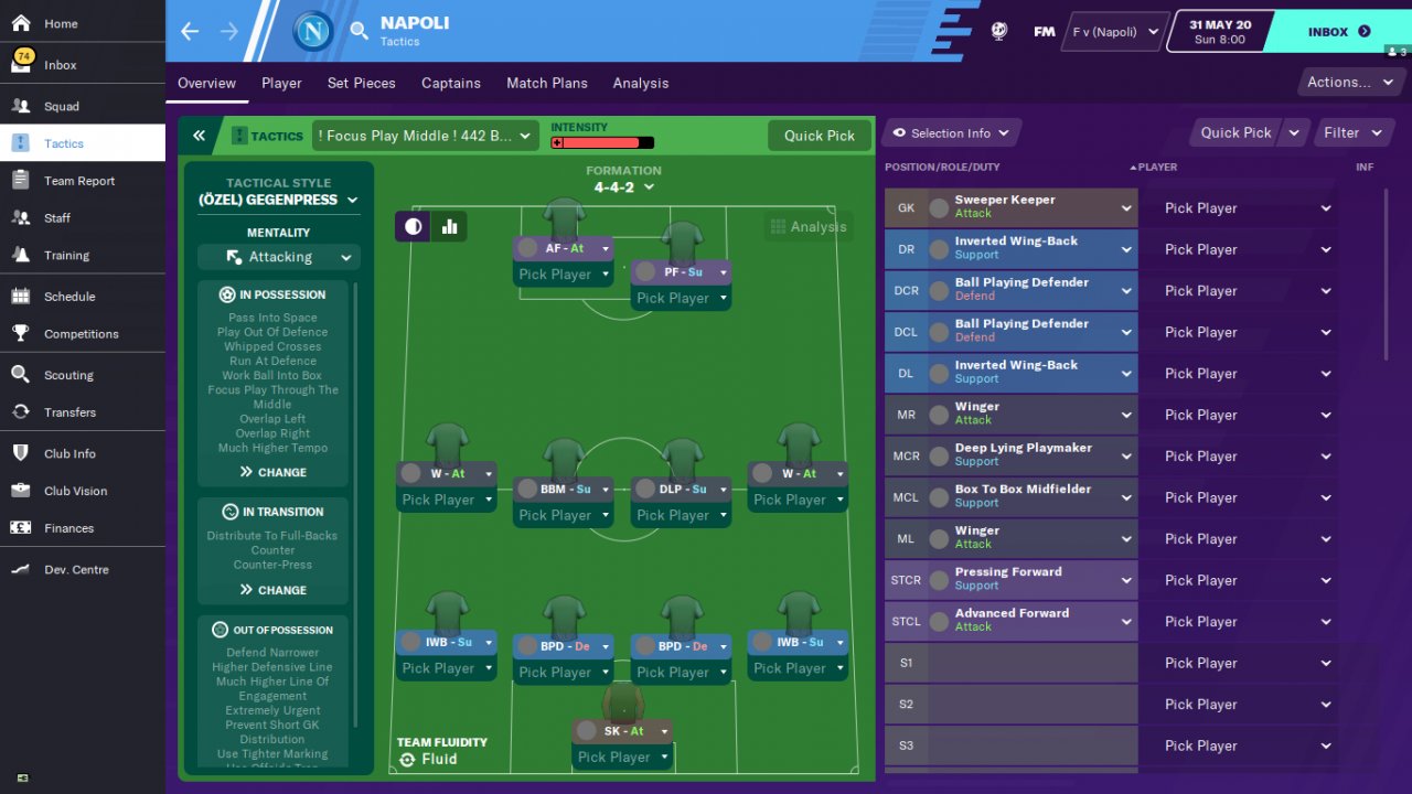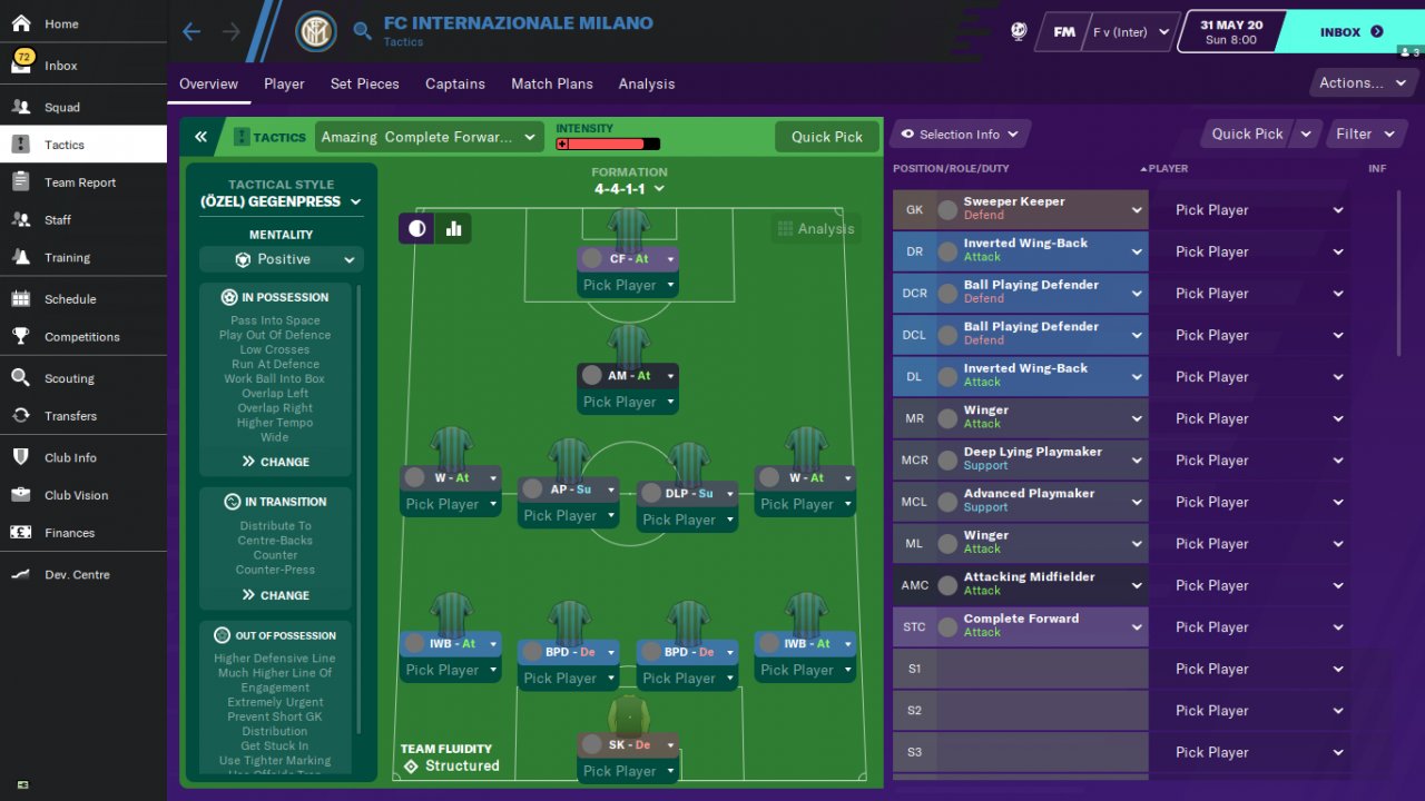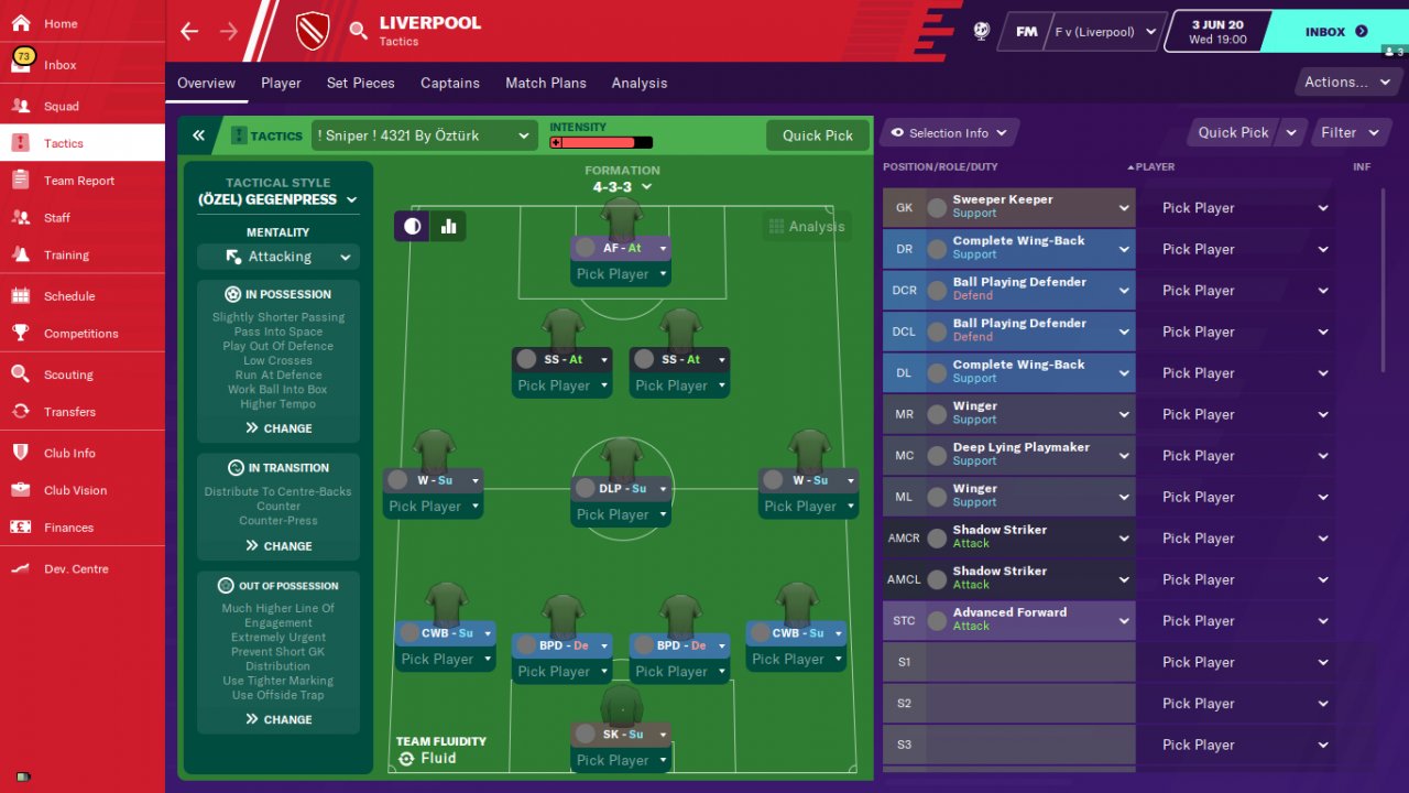 With this tactic, the pressing forward will play a big role in the team's winning matches and trophies by scoring numerous goals. So the tactic will work incredibly hard if the striker becomes one of the best players in the team. Finishing, diligence , courage and balance are extremely important for a pressing forward