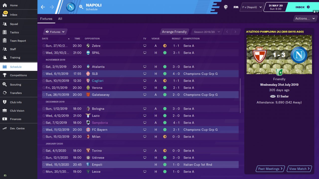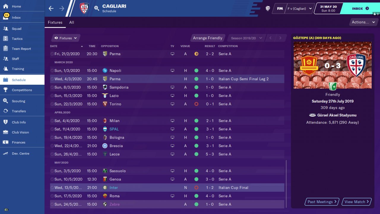 Napoli win Serie A and Cagliari very successfully in Serie A.