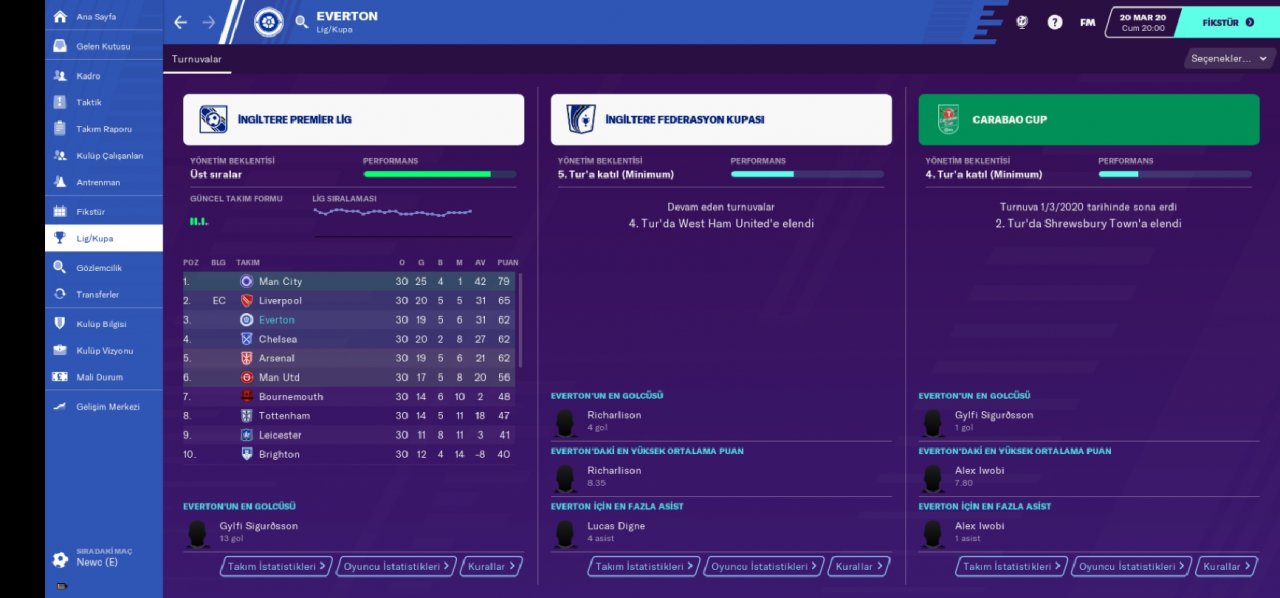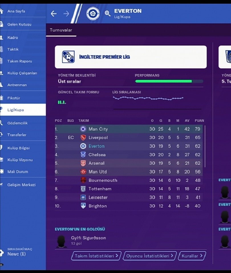 Hi guys, I'm here with my custom made 4-4-1-1 tactic. With this tactic, I collected 62 points in 30 premier league matches with Everton in the 2019-2020 season. I also shared the data of the successes I achieved with the Turkish team, Beşiktaş and Ankaragücü. It was especially gratifying to finish the league at the beginning with the Ankaragücü team, which is expected to fall into the cluster.