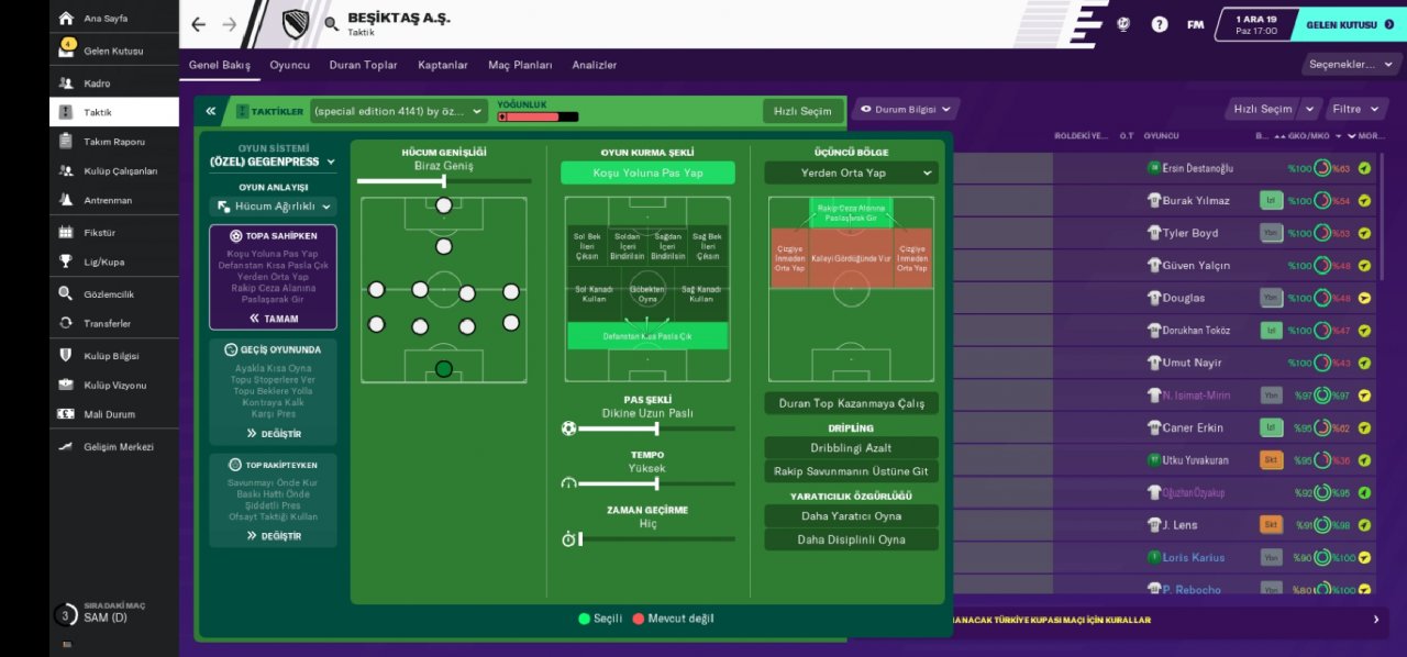 We play with a positive football style that makes organized attacks with the ball that pleases the eye with my tactics. Our expectations are trying to feed our secret forward and creative forward by overlapping right and left. Our wing strikers fold inwards and look for goals around the penalty area, and open the way for wingbacks.