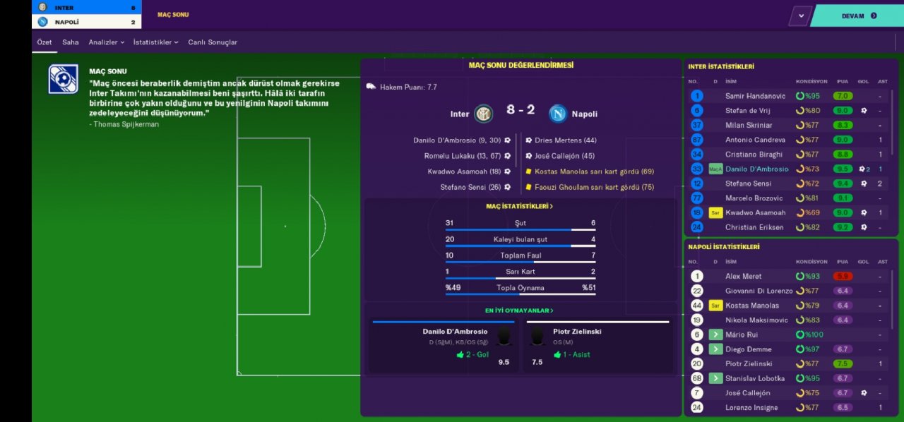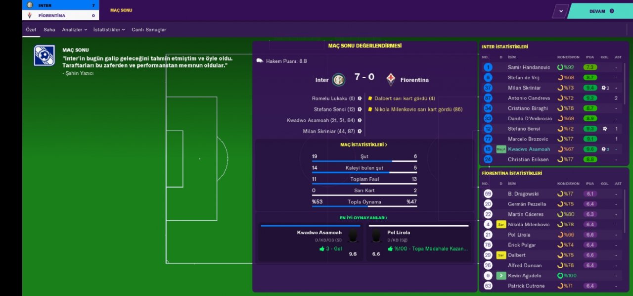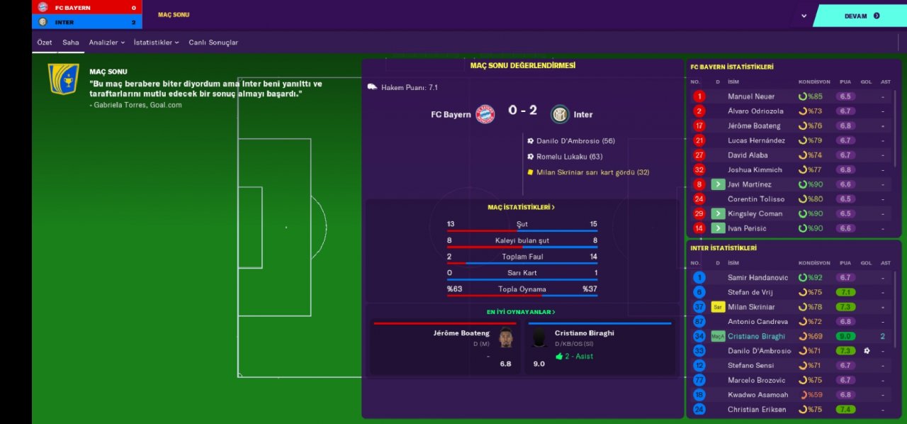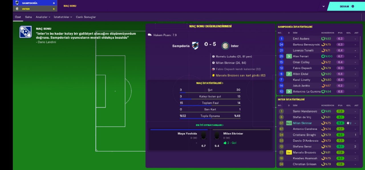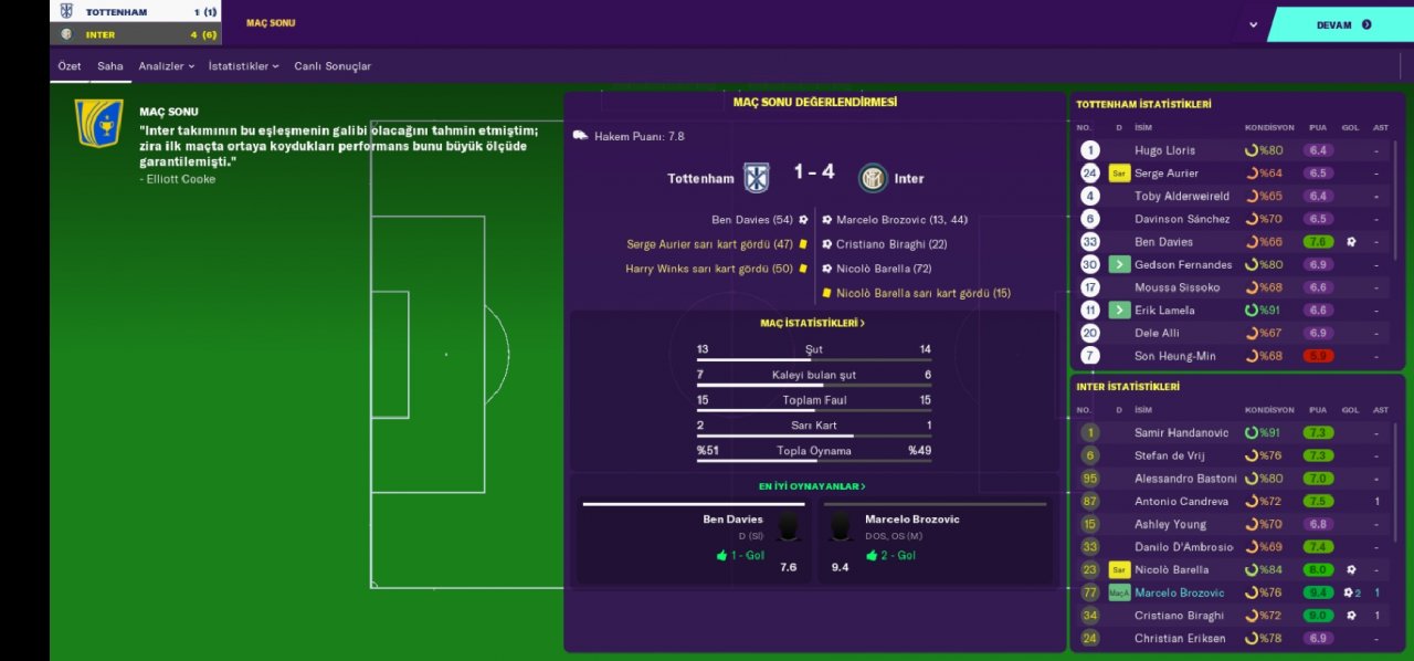 Hello everyone, regardless of your favorite undertog team, I am here with a tactical game that has an incredible victory percentage and an extremely abundant goal. We became champions with the Inter team in the Italian league and we are doing very well with the rubin win. Being a champion with the inter team made a loud noise because we broke the hegomania of the juventus. We also defeated the juventus in the Italian cup and became a champion. We got out of the group which was incredibly difficult in the Champions League, leaving the bayer munich out of the way. In the second round, we eliminated the British giant totteham indoors and away. In the quarter-finals, we were eliminated by Barcelona with a goal difference.