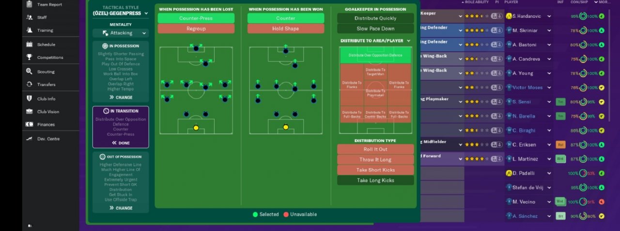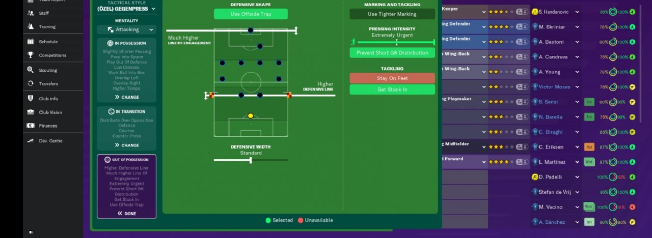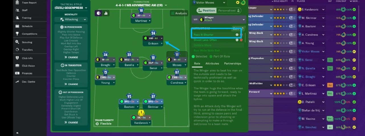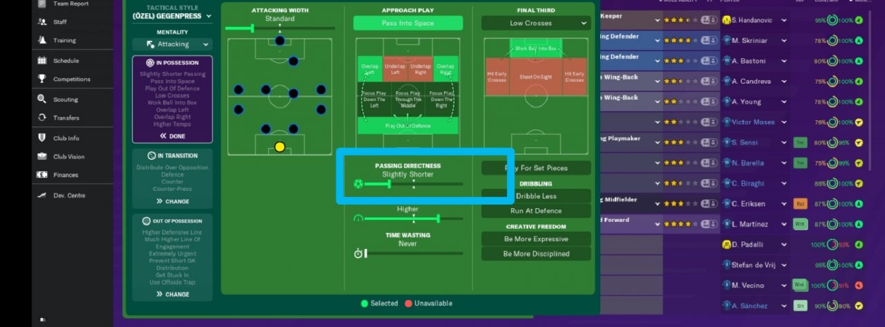 Important: * In order to obtain maximum efficiency from tactics, it is extremely important that all players' pass feature is above average.