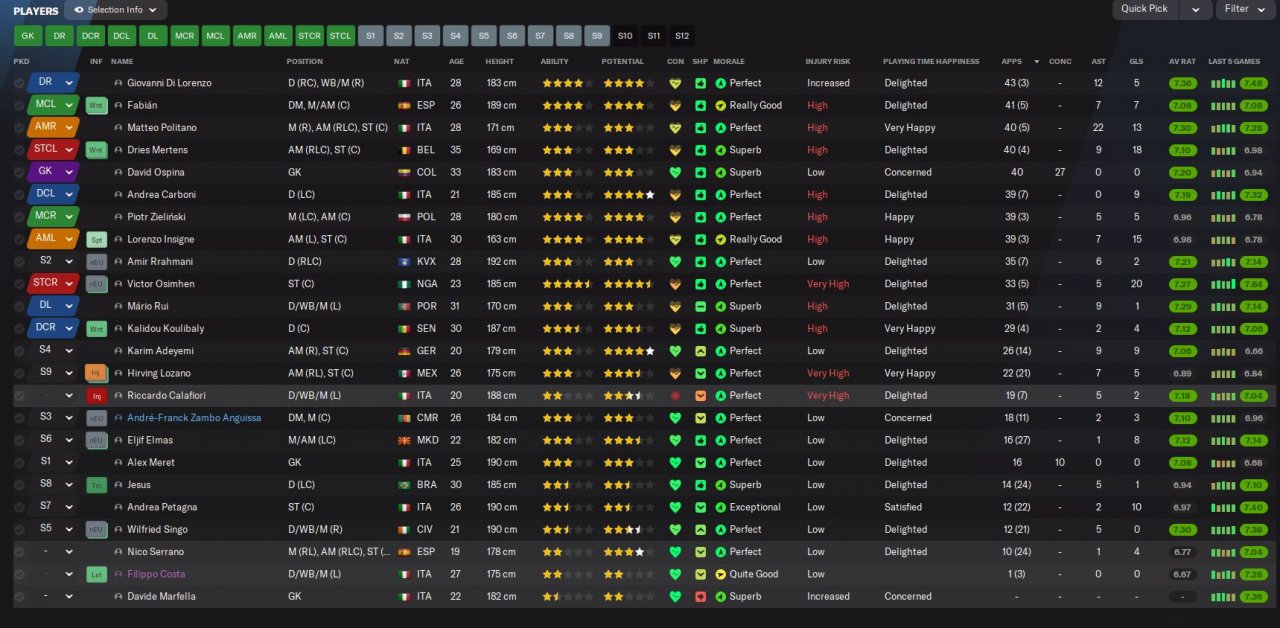 I played with Napoli, a good team but not excellent to play at the top in all competitions, towards the end of the season I made a lot of turnover to be able to face the cups in the best possible way since the championship was won many days in advance, I think with a more complete team and with the right players for each role can do even better.