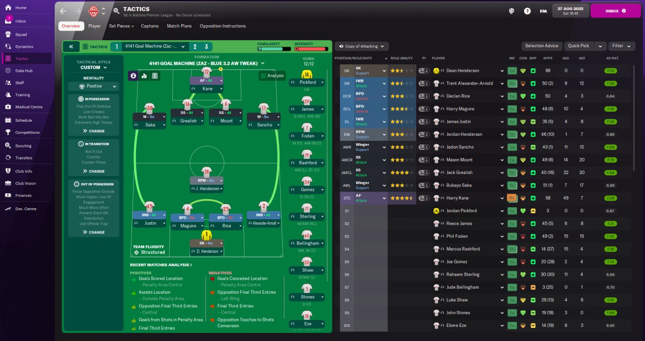 I took two of the best tactics for FM22 ZaZ - Blue DM & Martin Snoop 433 and merged them together to create the Diamond Destroyer with some pretty good results.