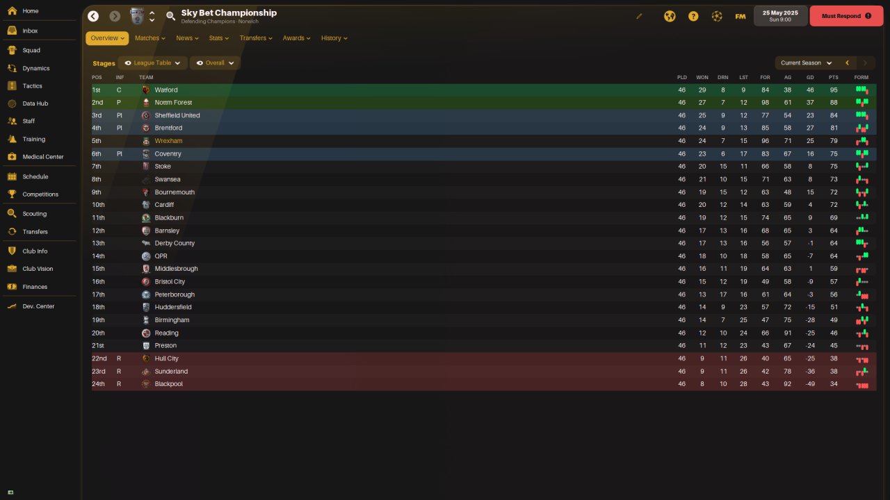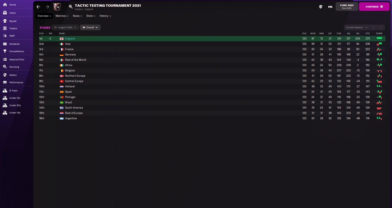 The tactic scored slightly fewer points in my test league than both Zaz - Blue 3.2 AW and Zaz - Blue 3.2, but conceded fewer goals and had a higher goal difference despite scoring a few less goals.