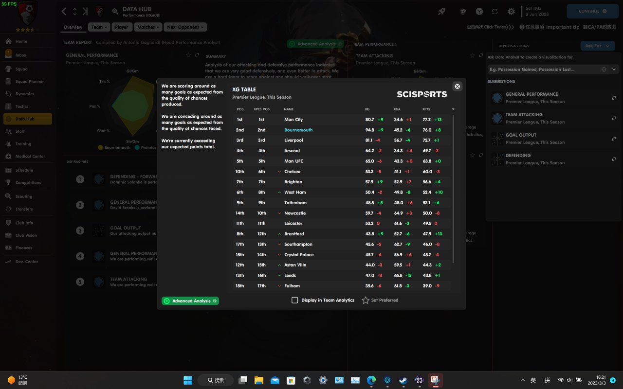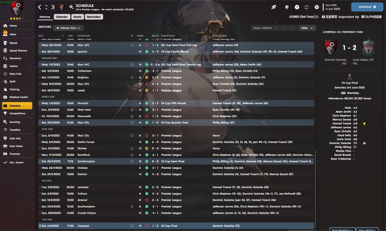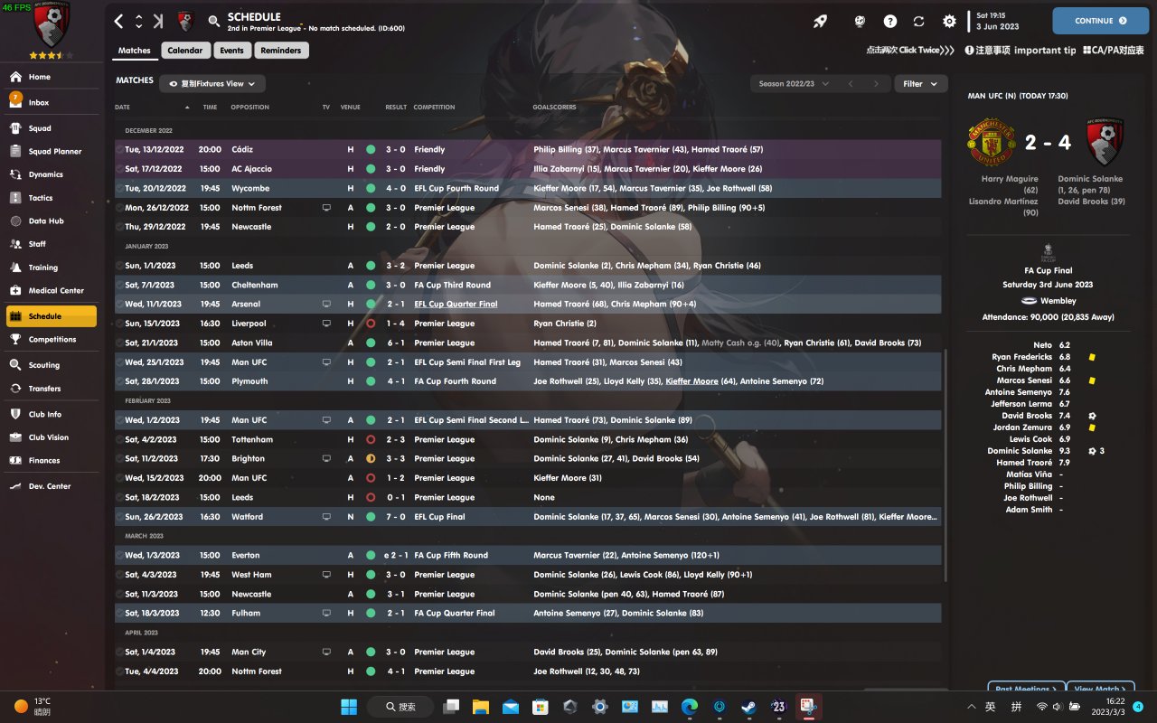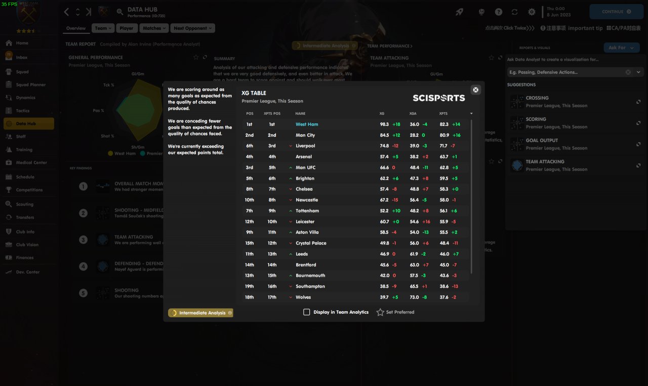 In my Chelsea save, Chelsea got 56 GF and 6 GA in 16 PL matches, only got 1 L before the World Cup.