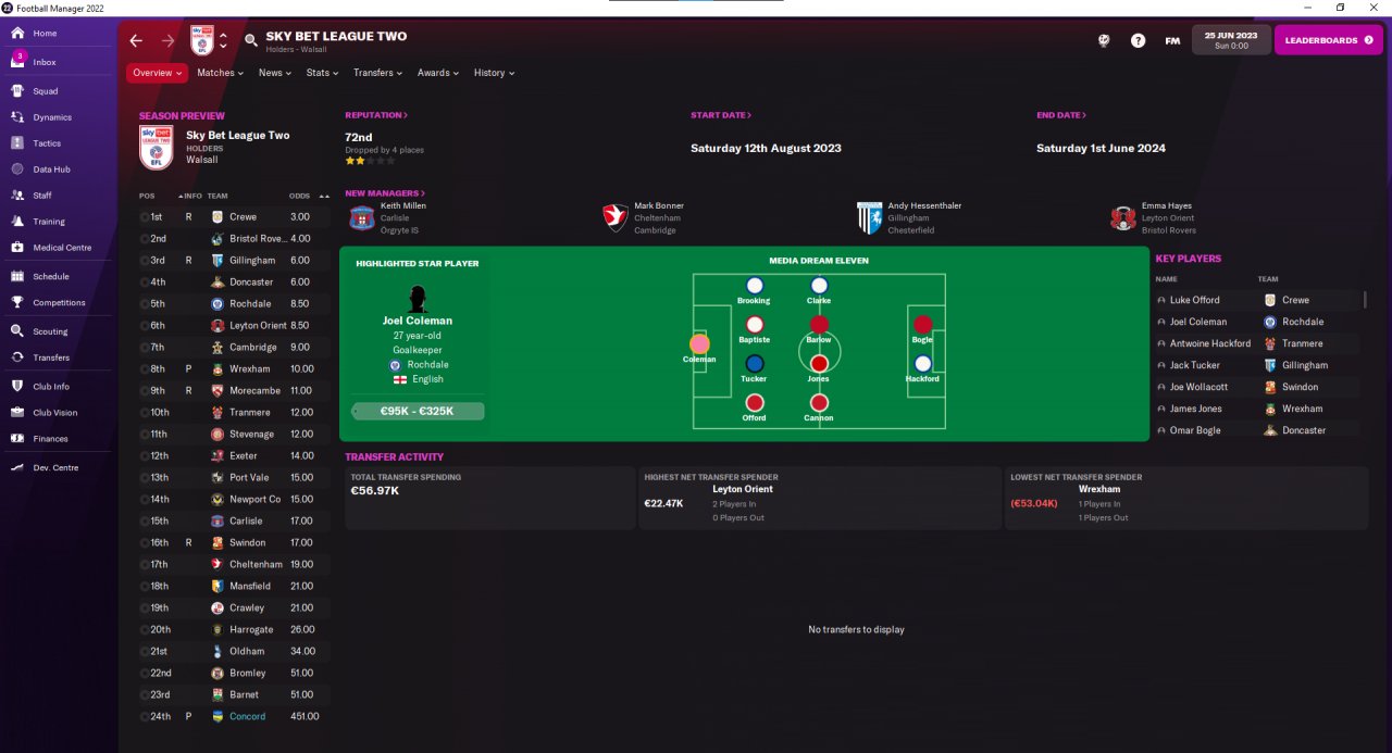ZaZ said: Six matches into Sky Bet League Two (so I can skip ten at a time until fourty six matches of the season). My team is again predicted last by a large margin, but promotion should be easier since there are three direct promotions plus one in play offs (lower divisions have one direct plus one in play offs).