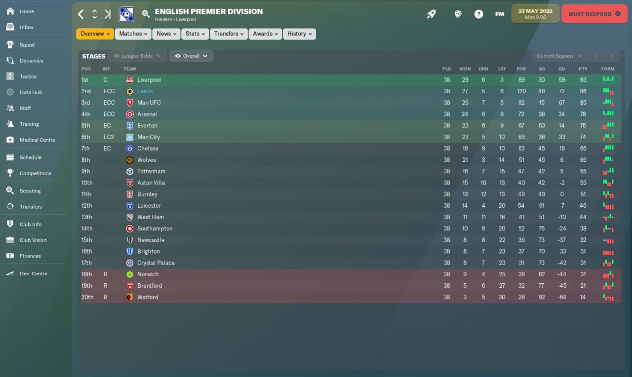 ZaZ said: Played a couple more of matches and results were simply awful, but expected since I had a sequence against the Big Six. I got kicked from Carabao Cup and didn't win any of the five last matches for the league. To make things better, next match is against Manchester City. At least I'm only two points behind my goal (Euro Cup zone), so it might be possible since those were the worst matches.