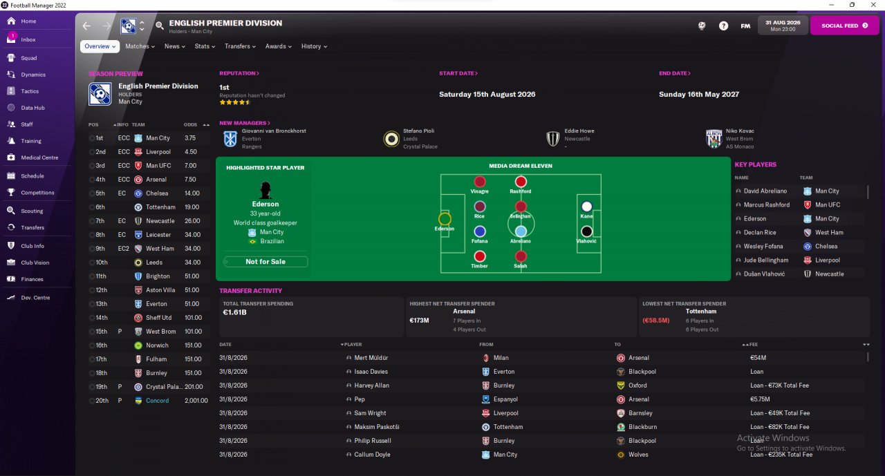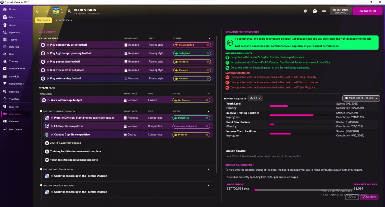 Premier League brought me a huge sum of money, so I started upgrading my infrastructure and hiring seven or eight new players. Board is currently planning a new stadium and upgrading training and youth facilities, and I plan to bring a couple more of faces by the next transfer window. My goal is to replace both my DWs for AML/R, so I can fully migrate to Blue 4.0 (currently training both Blue 4.0 and Blue 4.0 DW, so I can use either winger as needed).
