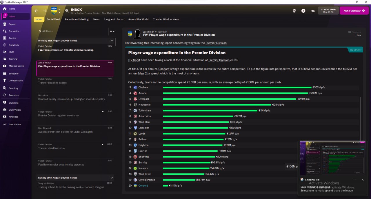Other than that, there isn't much going on. Players are asking for new contracts and I keep denying then, but if they offer an ultimatum, I'll gladly renew with anyone. Can't keep paying 20k wage forever in Premier League.