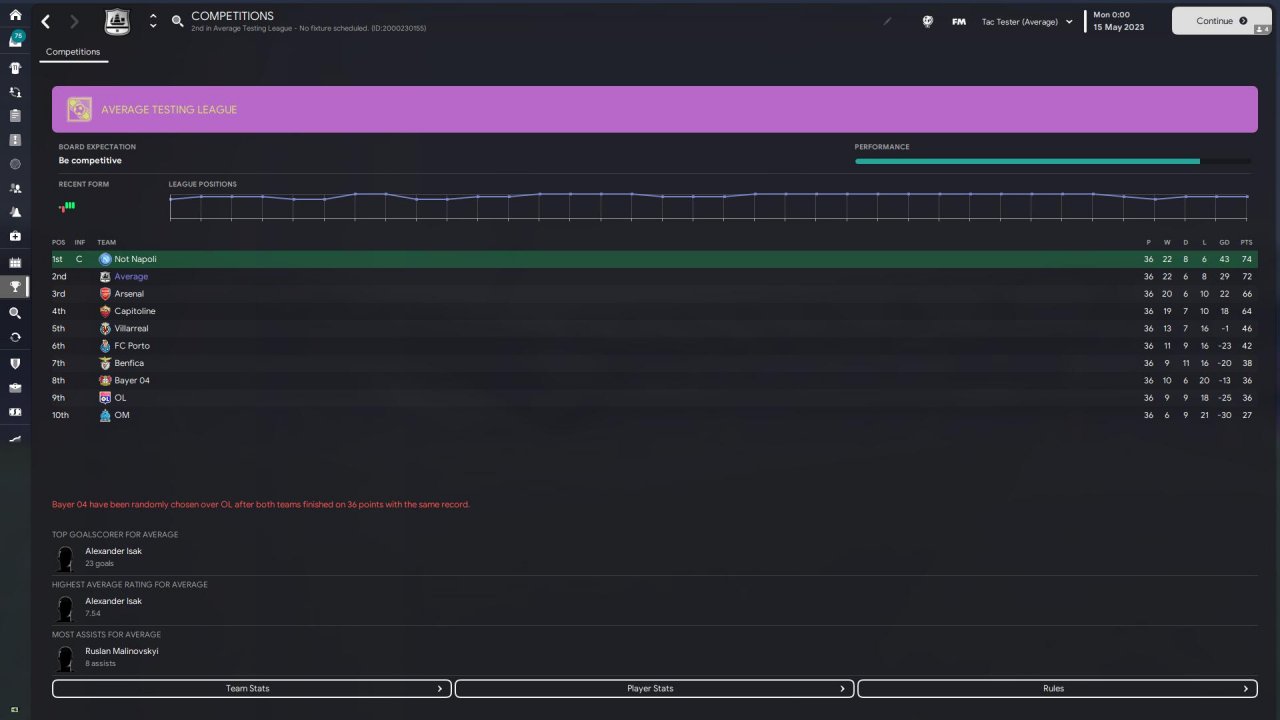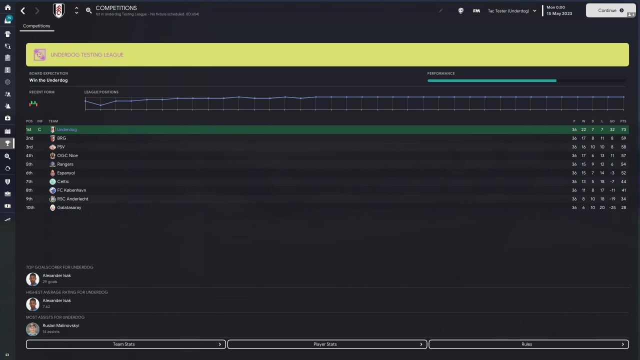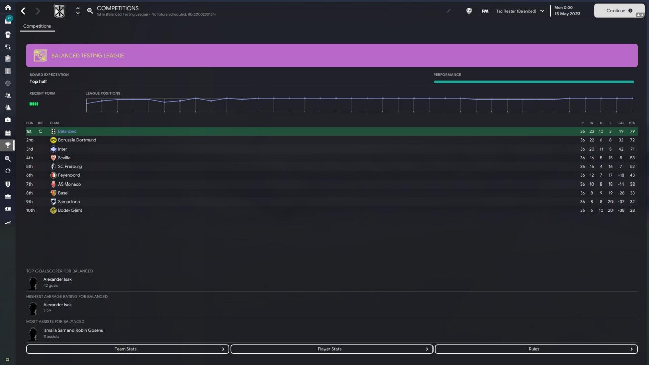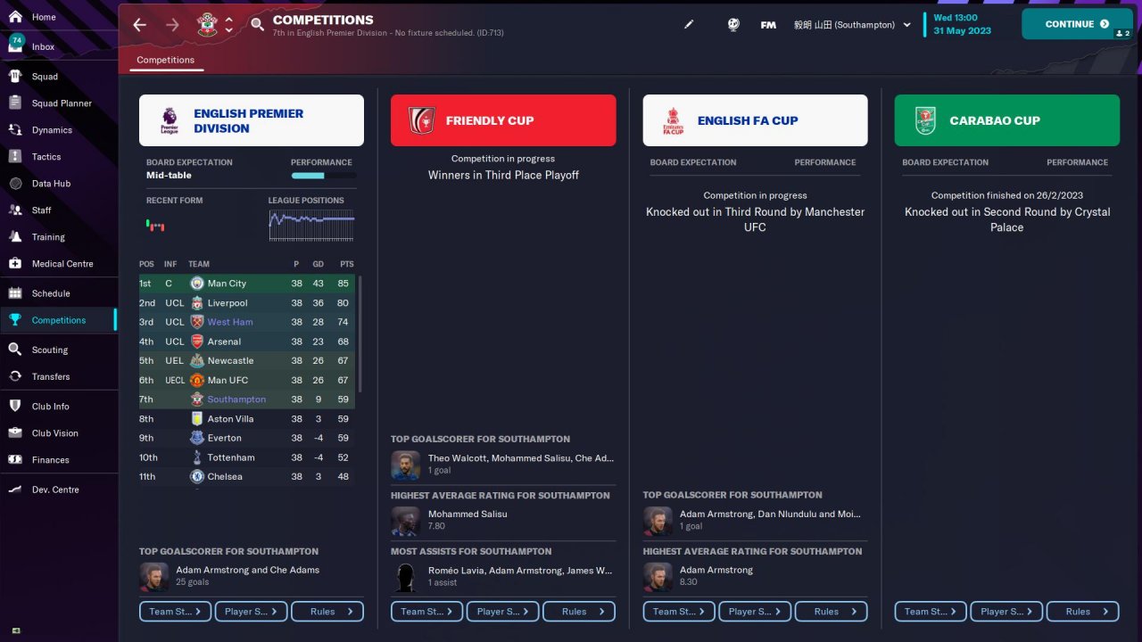 Southampton was expected to be 17th. After using my tactics, I won 17 games, drew 8 games and lost 13 games, and entered the UECL qualifying match as the seventh place in the Premier League.
