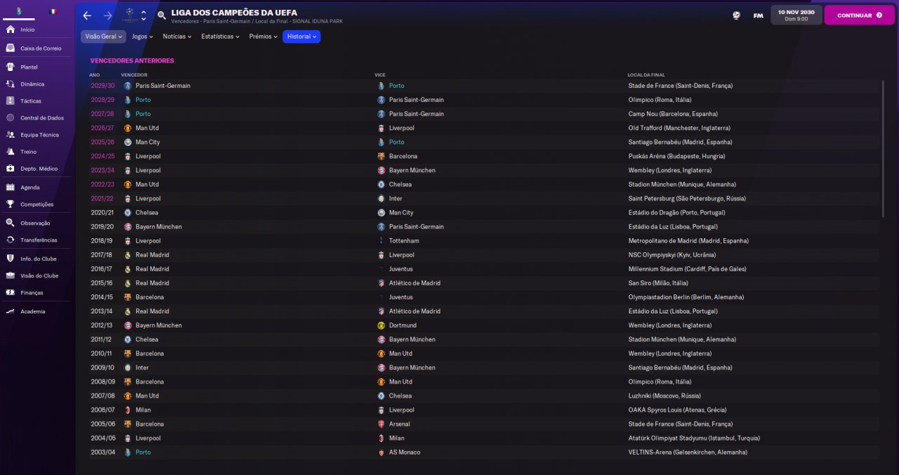 Champions League history: