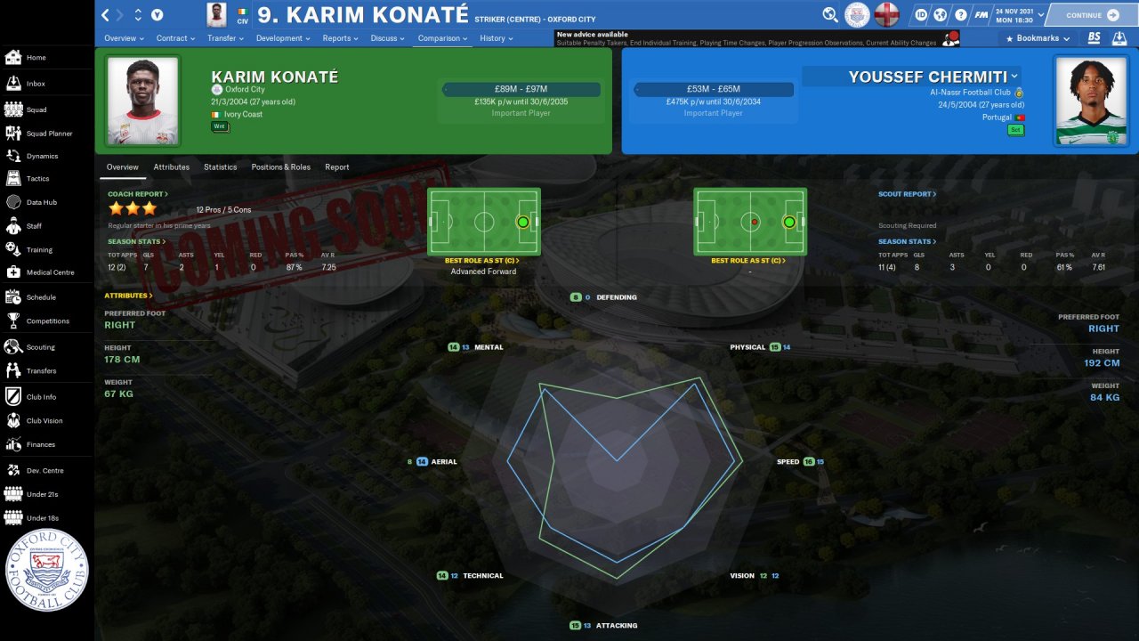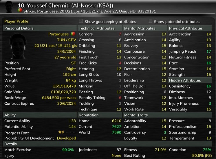Yes bro, the one in your model is the only "rating model" that rate Chermiti higher than Konate since all other model value pace acceleration, and finishing but not weight much in jumping reach!