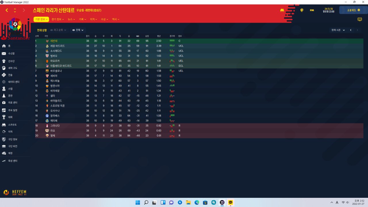 fm 22 처음 입문하고 잡은 팀 레반테로 돌린 전술인데 성적이 생각보다 괜찮아서 올려봅니다.