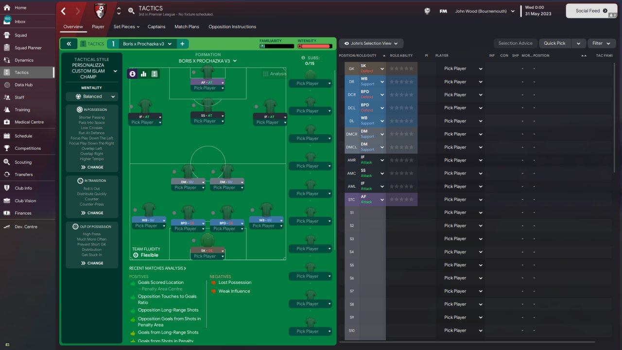 Right so the version of Boris x Prochazka that I uploaded yesterday didn't work that well with all of the additional player instructions. So I have a new version which is the same, but removes all player instructions to see how it does without any. The objective of this is to see the impact that @Delicious player instructions have on the tactic.