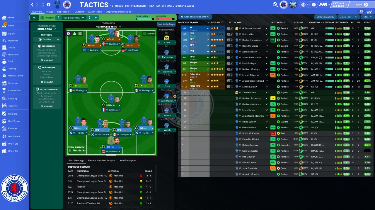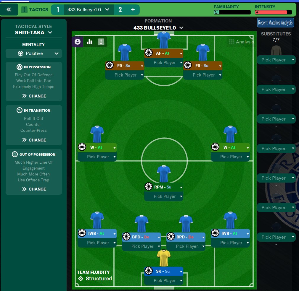 Hey fellow FM tacticians. Long time follower, first time submitter. This is a tactic I've had great success with in my Rangers save. Happily receive any questions. Training Schedules also shown below. Reason it's called bullseye is the dart board look it gives on the heat map every match.