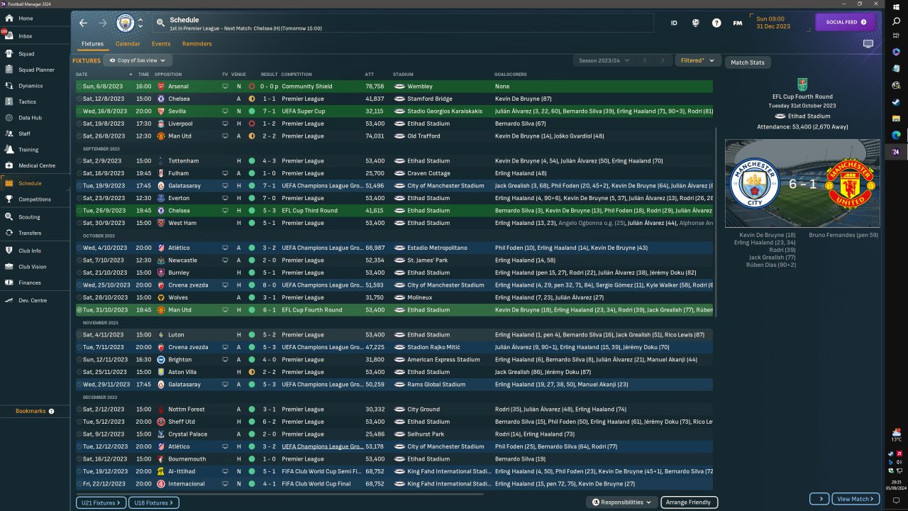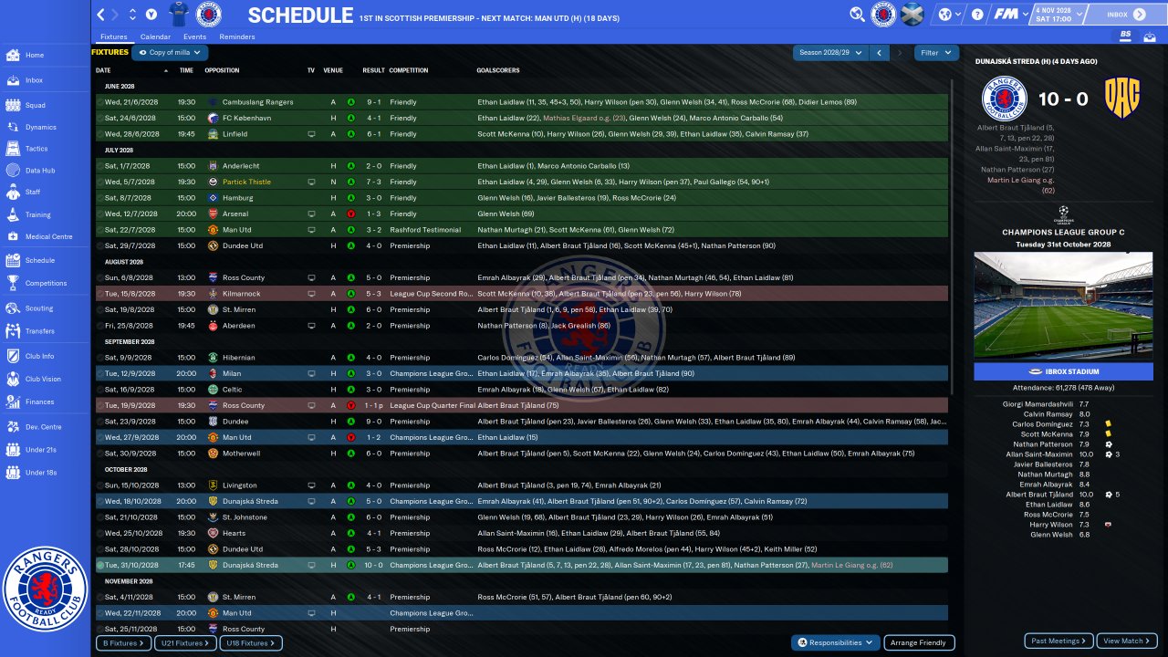 Superb results home and away with no OIs and no changing mentality etc as the schedule screenshot shows with the change to this formation mid season.