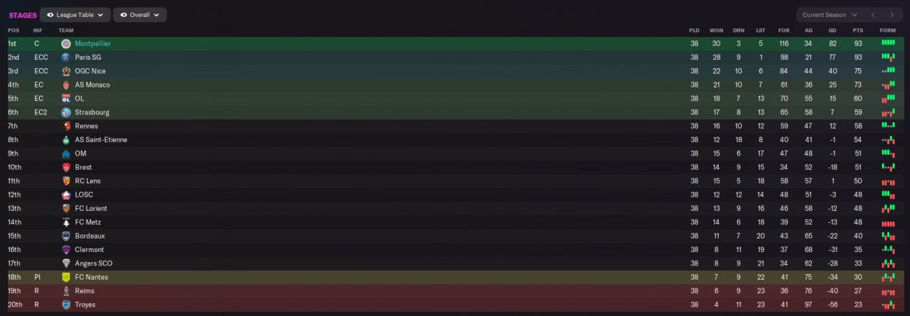 Won the league with Perugia, predicted 14th. Also won league with Montpellier, predicted 9th.