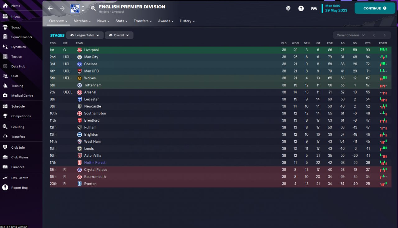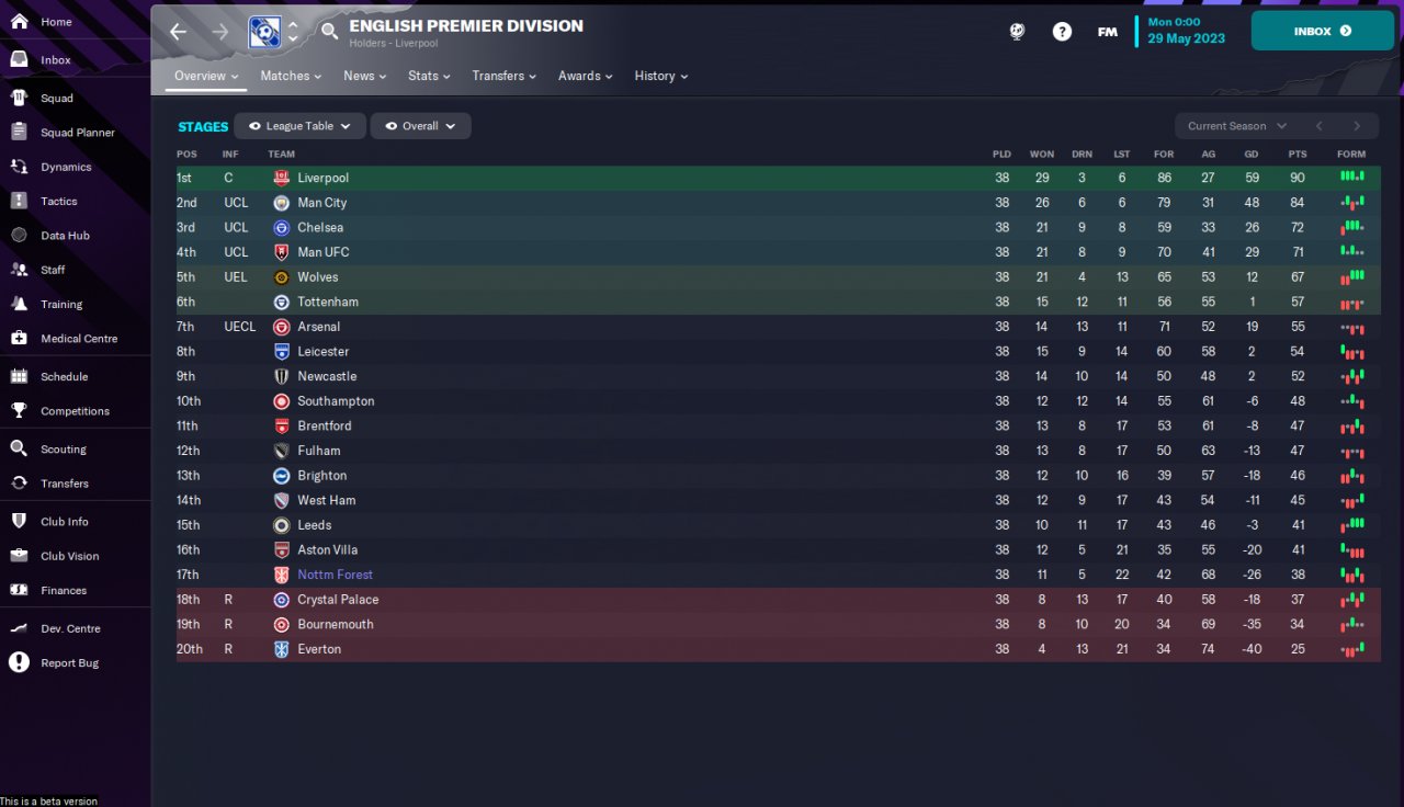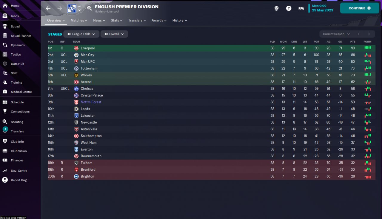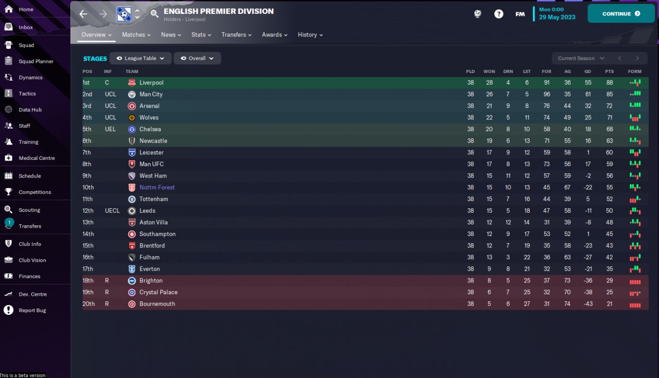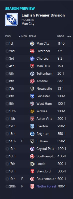 Btw, I was managing Nottingham Forest, one of the weakest team in the league if you look at the prediction table.