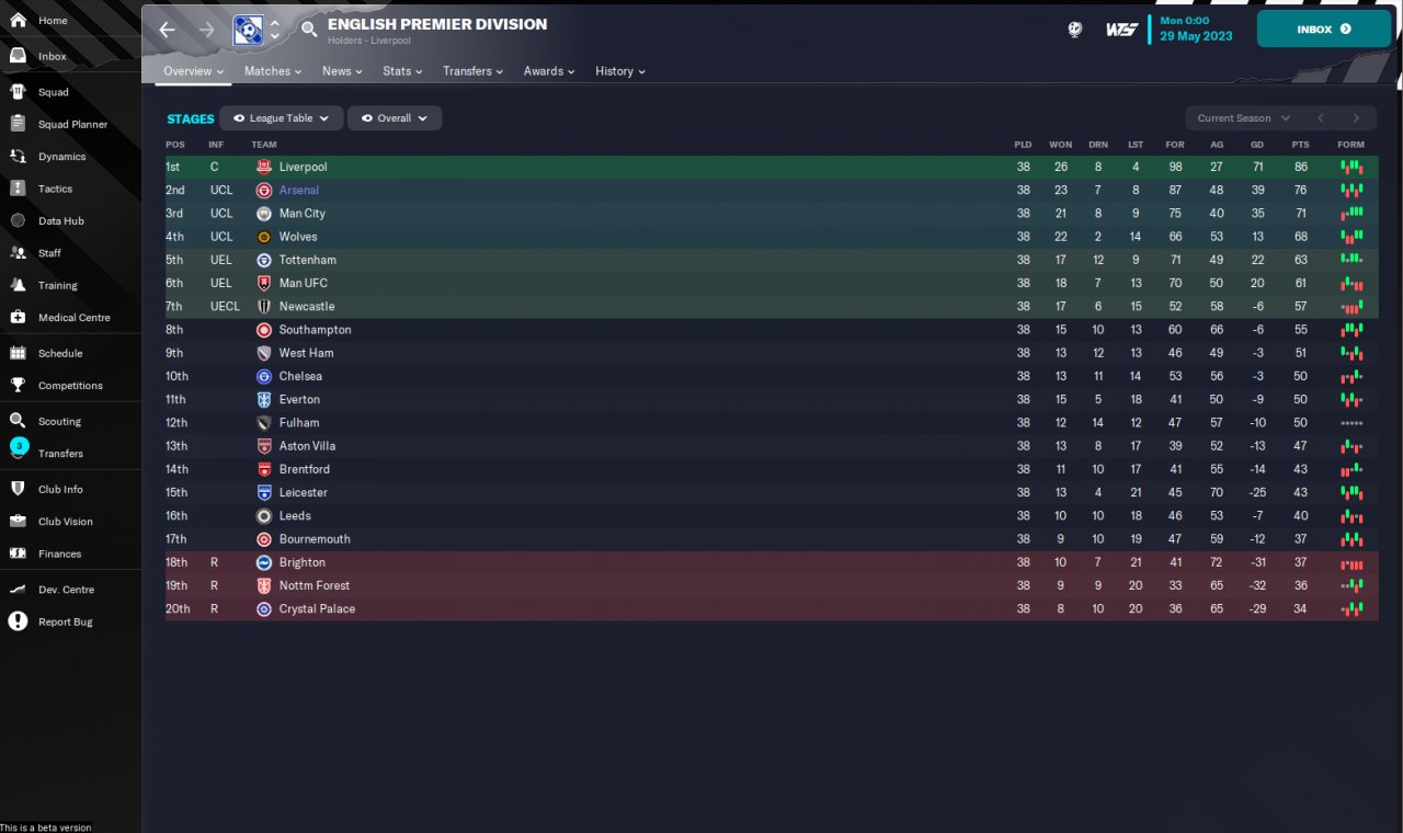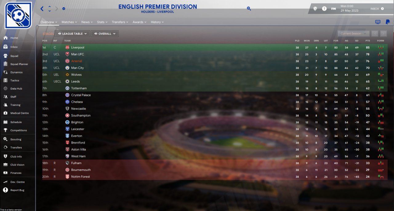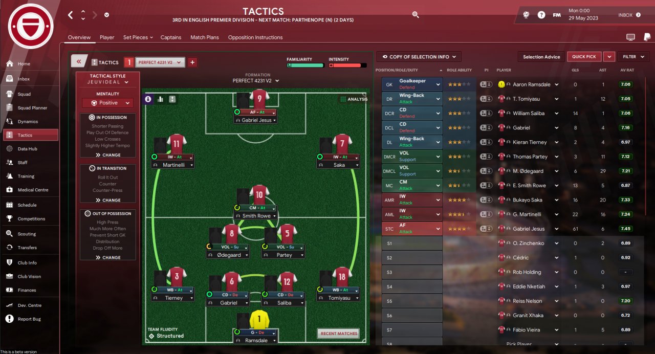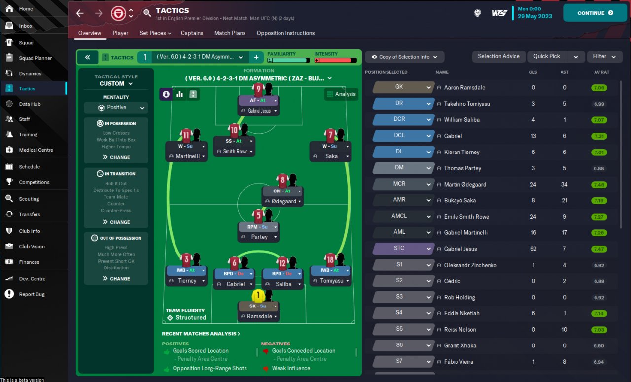This tactic was one of the best 4-2-3-1 tactics in FM22 so I thought it was worth trying in the fm23 beta.
