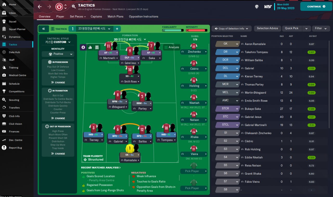 I've run a quick test on the new ZaZ's tactics with Arsenal