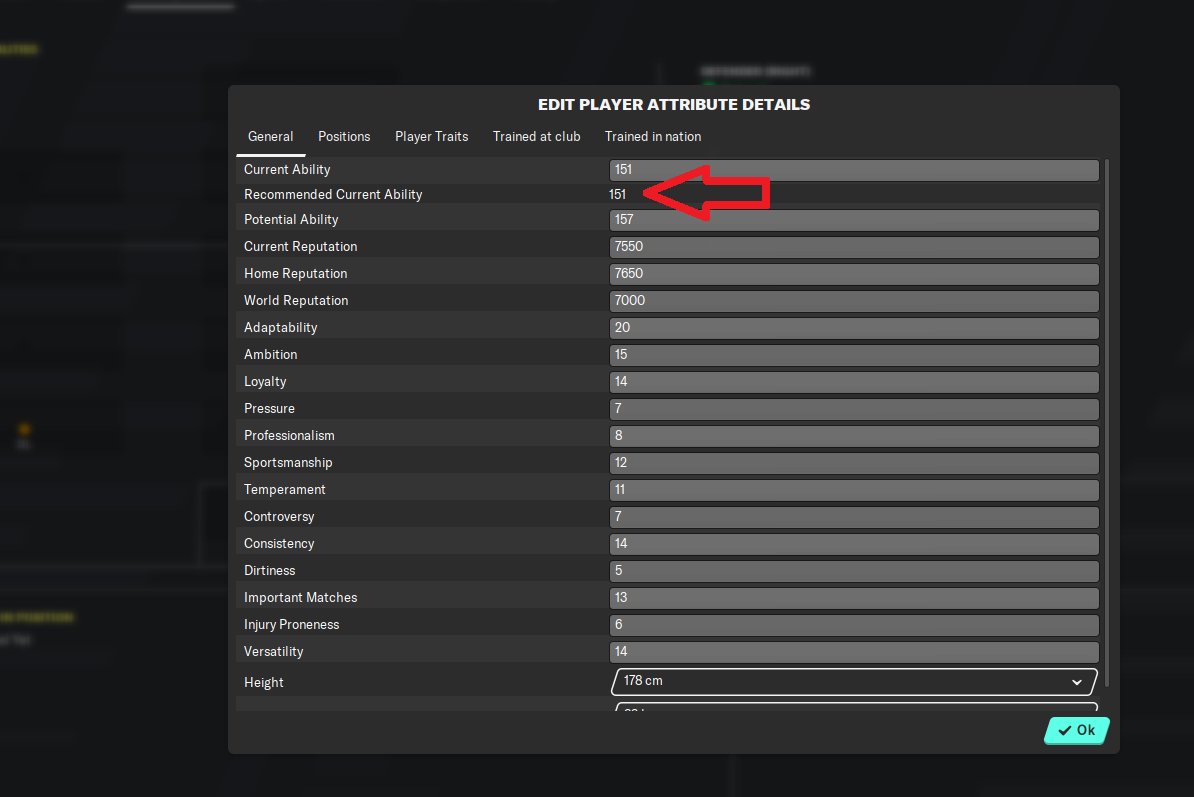 For instance, Kyle Walker's "Recommended Current Ability" is 151CA