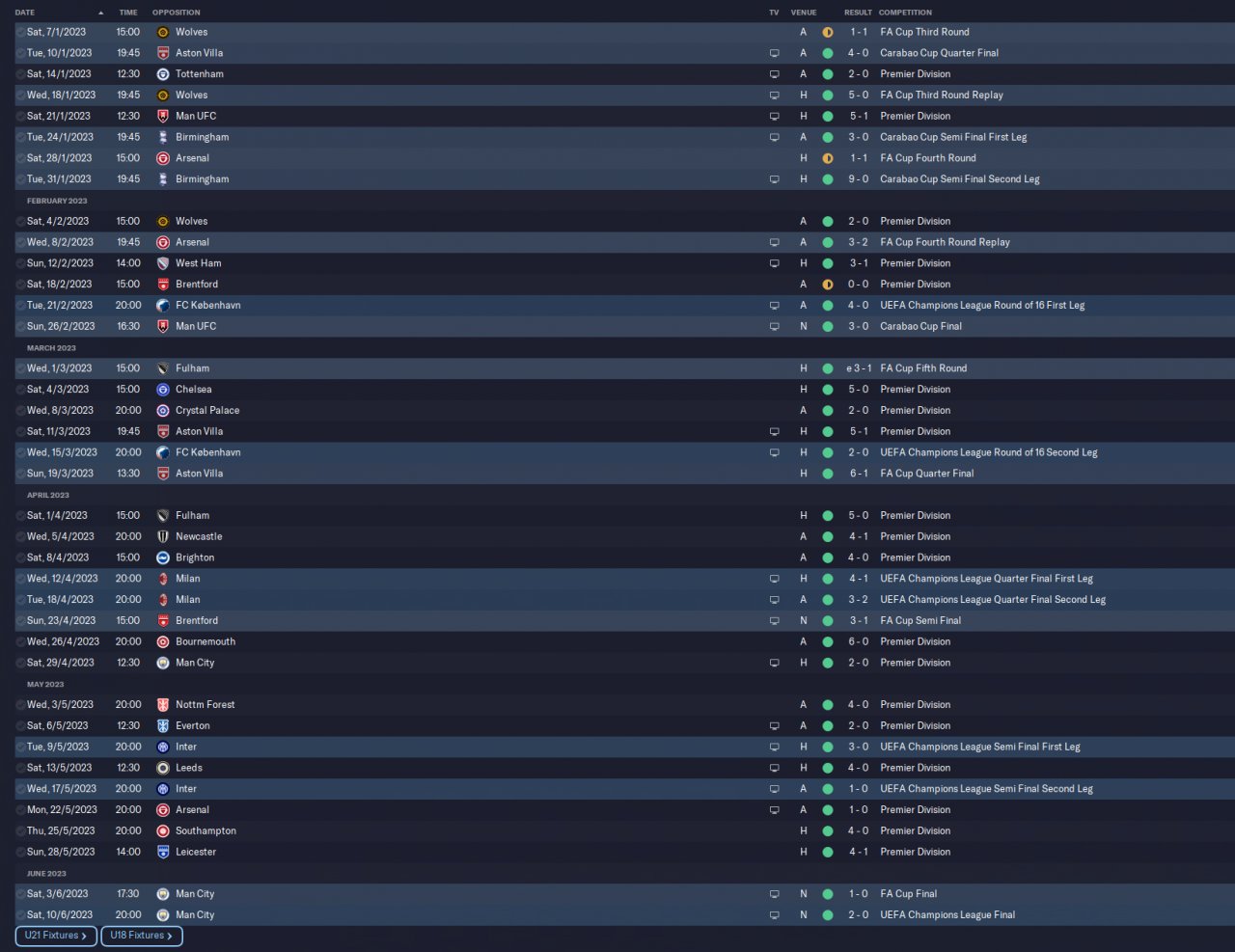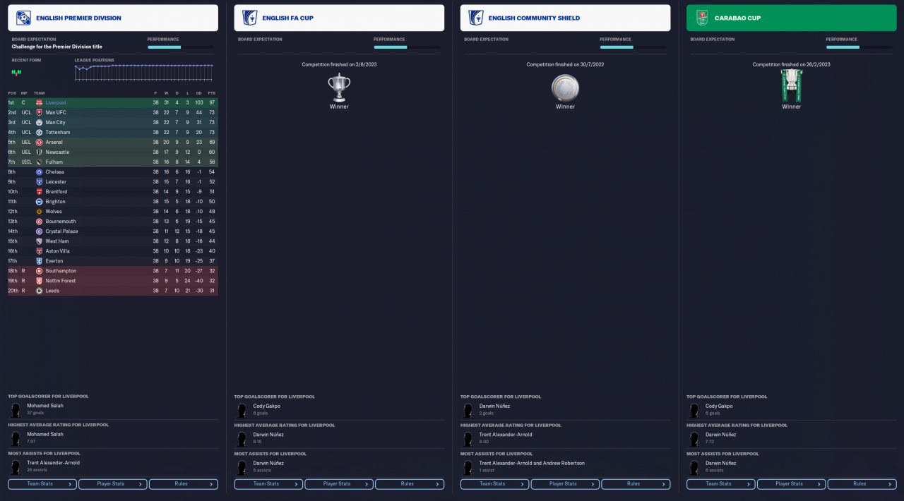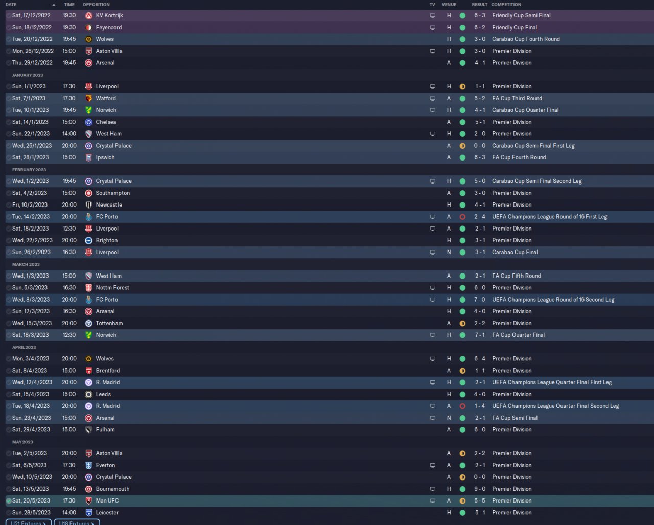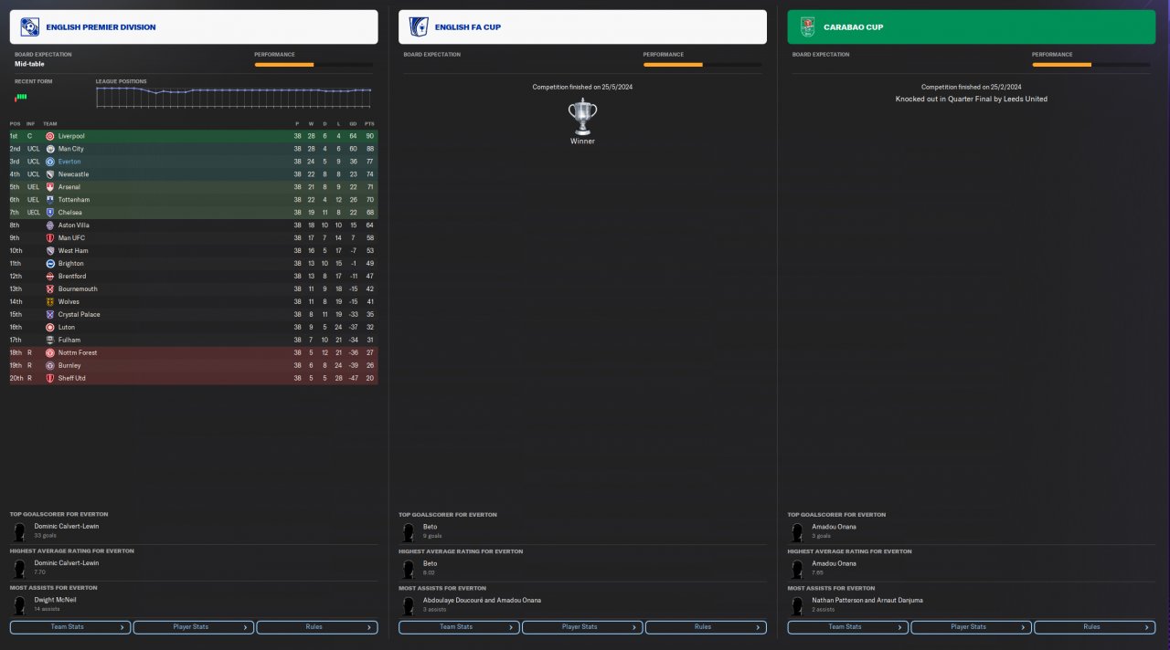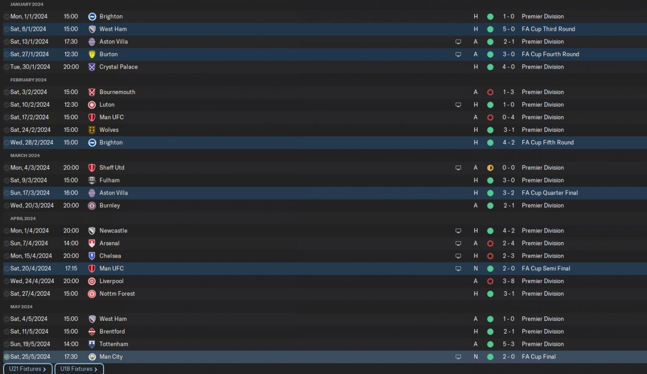 came 3rd, quarter finals in Carabou and champions of the FA Cup.