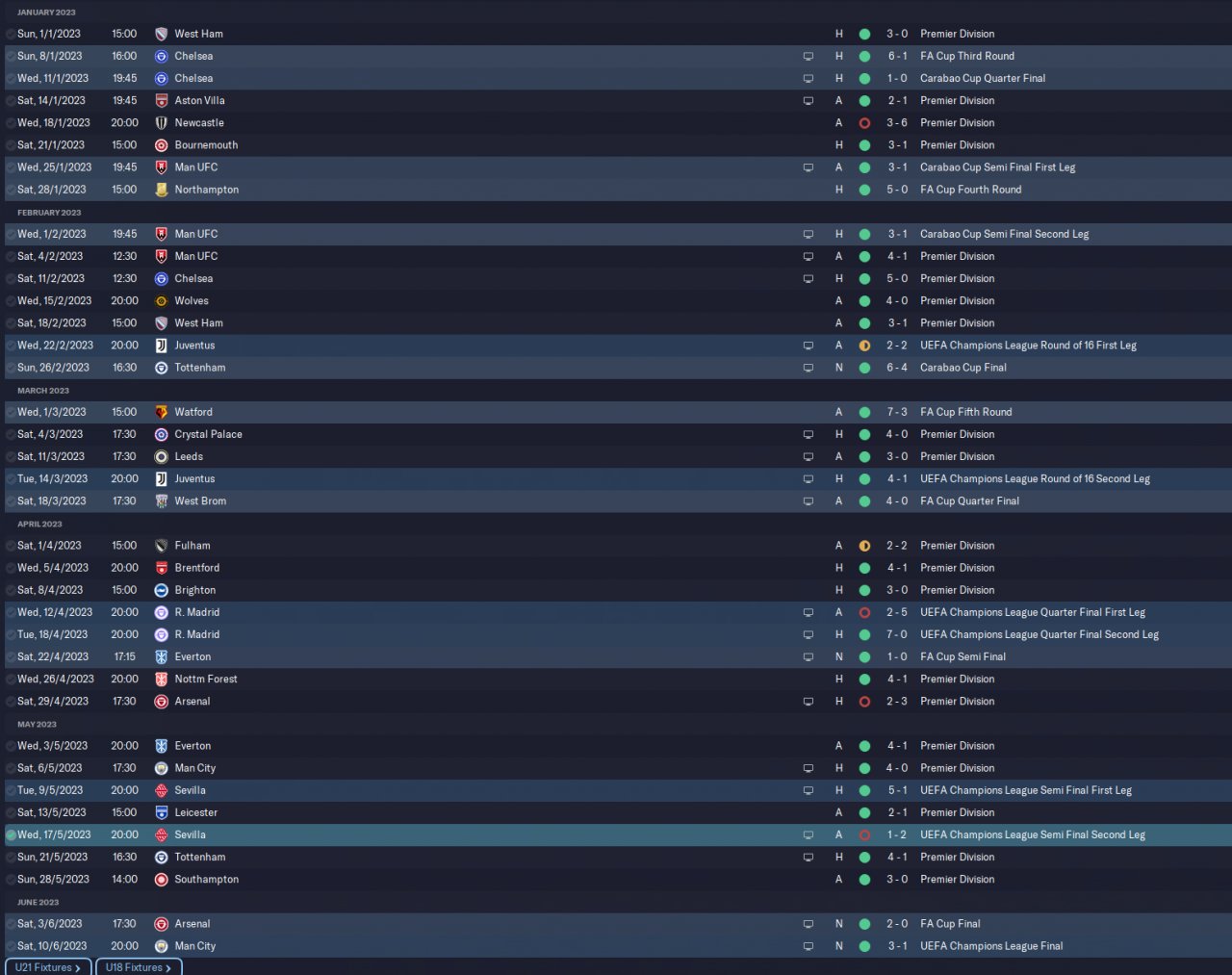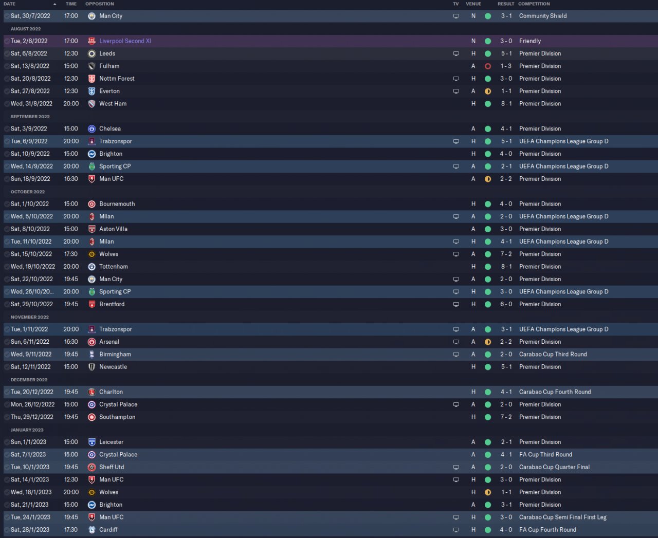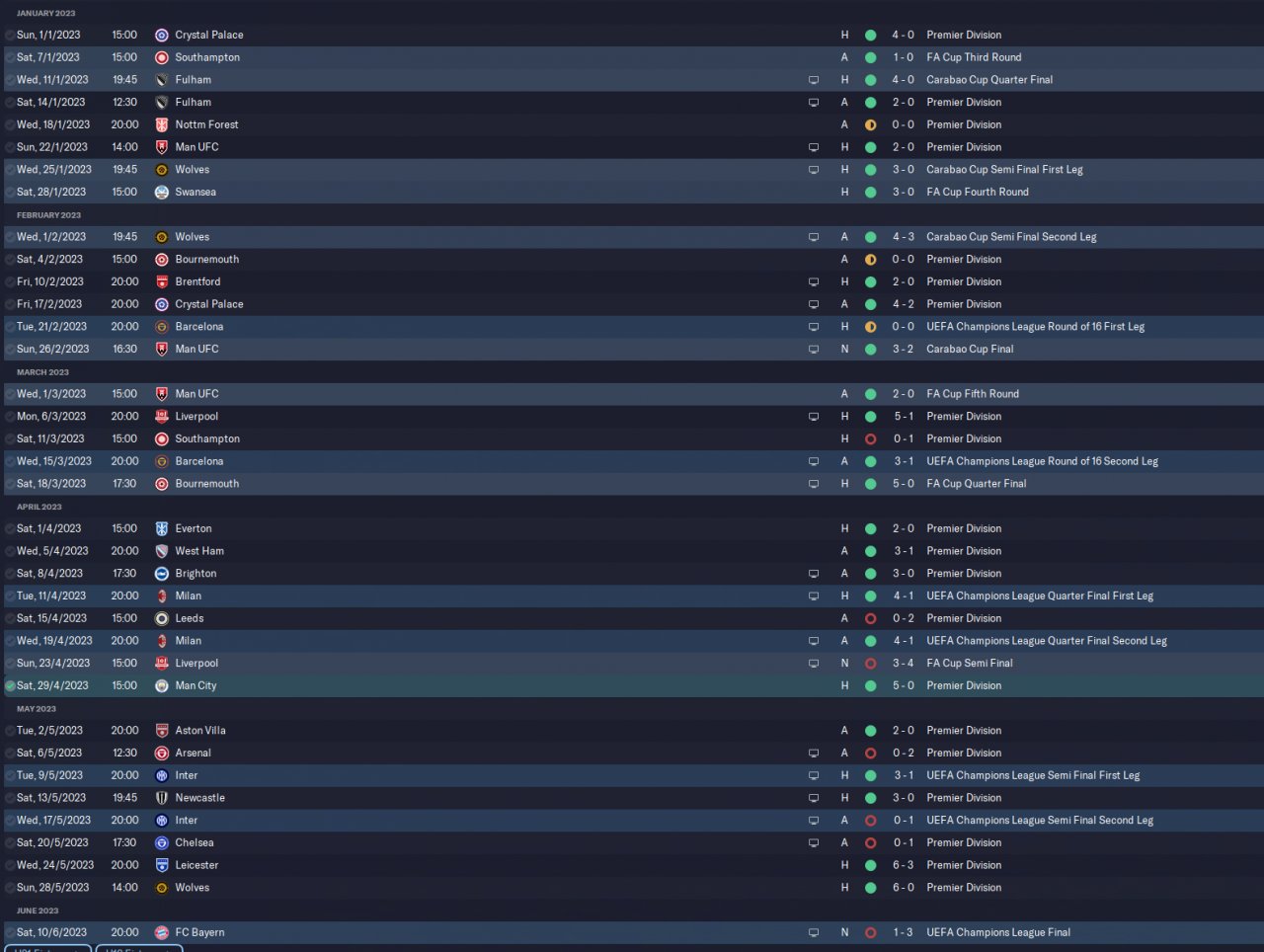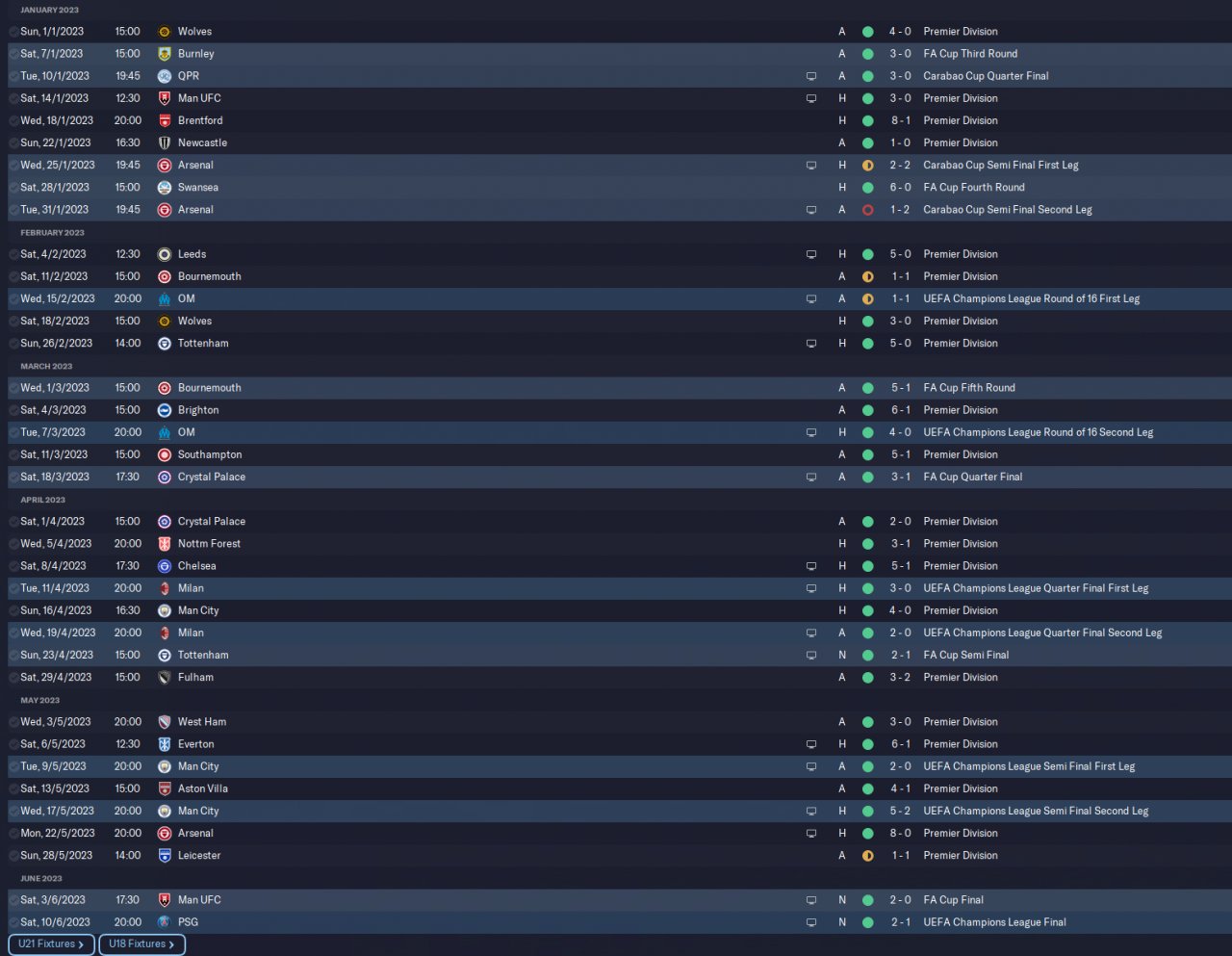 came 3rd, quarter finals in Carabou and champions of the FA Cup.