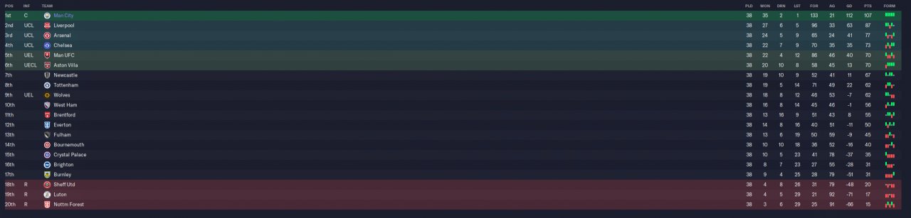 City (1st 23 goals conceded)