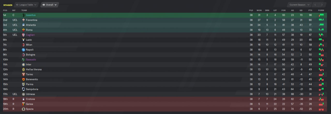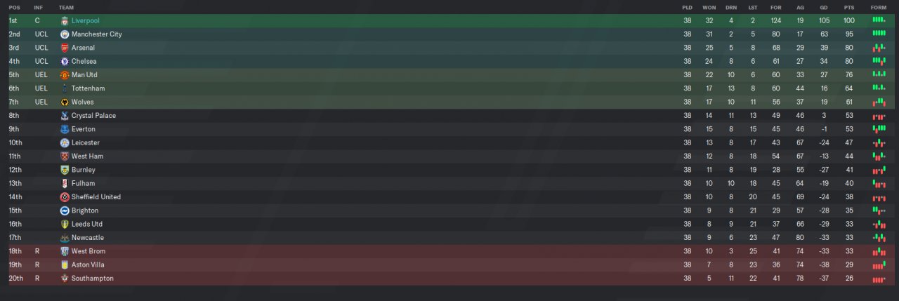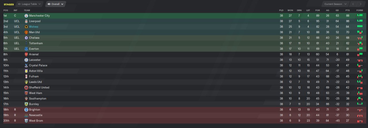 I went through all my FM20 tactics to see what still worked and the only one i'm happy with is PremeShorts. No transfers were done, all players that start with the club were used. CHELSEA WON THE LEAGUE HUDDERSFIELD WON THE LEAGUE