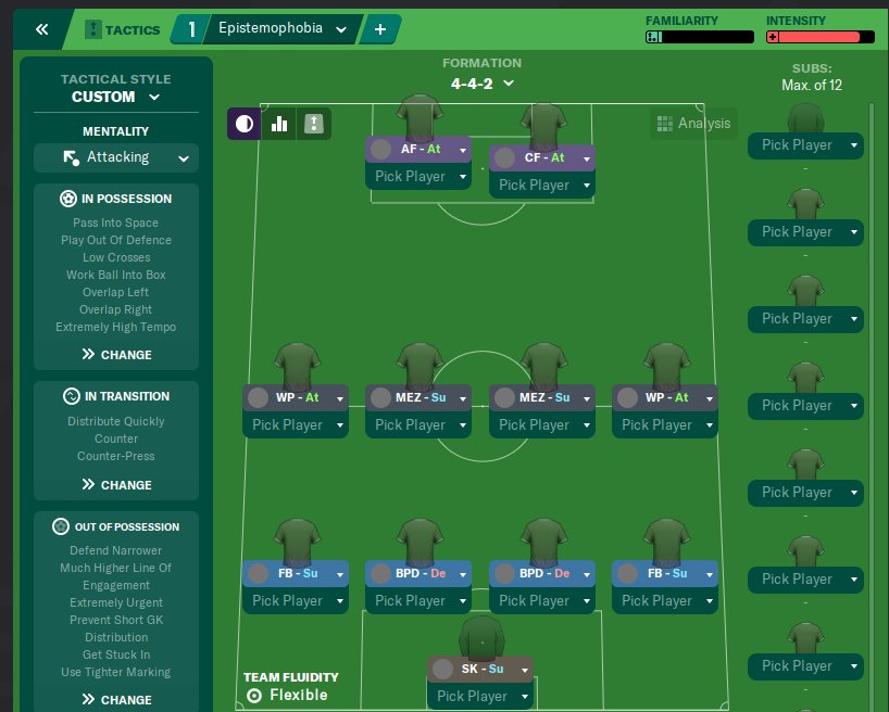 tactic is weird when i was looking through it, like tempo was all the way down with slightly direct passing on etc. Seems to work though
