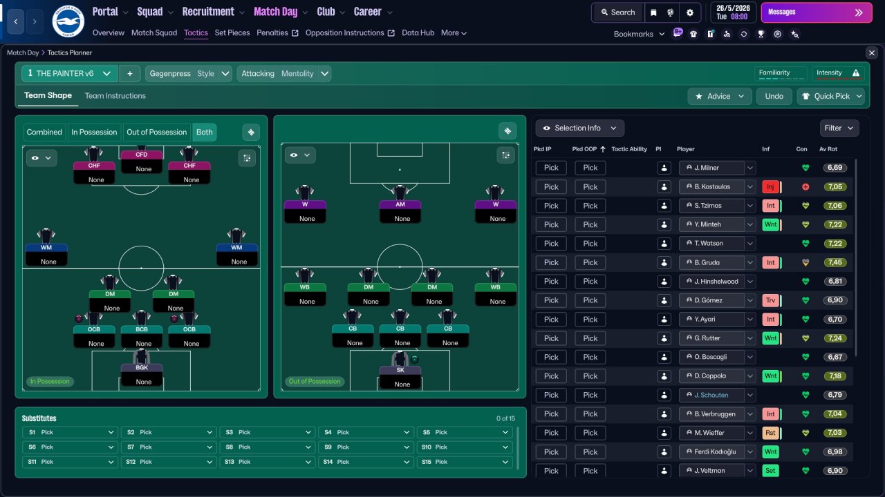 Slight changes to THE PAINTER v2 in order to check the impact of adding SLOW PACE DOWN and SIT NARROWER for WMs. Results in my testing seems inconclusive, decent testing season with Brighton tho.
