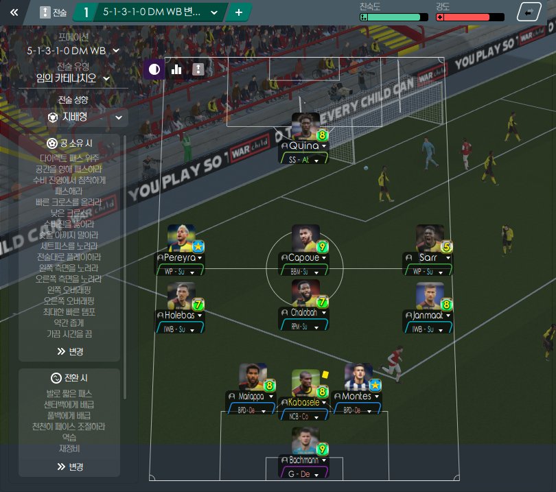 I tried to stabilize the defense a little by mixing the left and right fullbacks and wing forwards' attacks and support appropriately.