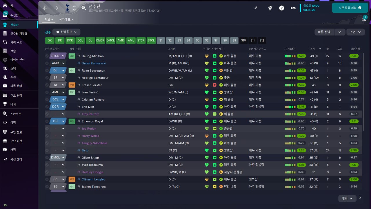 4th in first season of English Premier League with Tottenham Hotspur, full holiday