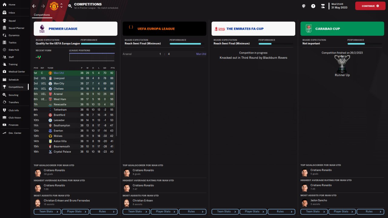 New tactic that worked great with United by winning the Premier League and Europa League, Ronaldo banged 51 goals in all competitions.