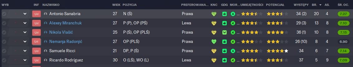 CB - Your classic modern CB with the ability to move with the ball and decent passing. WB - Those are very attacking oriented players with some ability to defend. Physical attributes being more important than technical ones. You can see on the screenshot below, they move into AML, AMR when in possession. If you can get a fast guy that can jump that is going to help you a lot when defending crosses. DM - This is your modern HB. A pivot that drops between CBs in build-up phase. In offence he is mostly covering for counter-attacks but also makes himself available for a back pass to retain possession. Can be a re-trained natural modern CB if you have a spare or can't find a good DM. CM - Your playmakers. Technical players, don't have to be fast, but good dribbling/passing is important. Why mezzallas? I find them working well on support and garbage on attack mentality. On support they - surprise - support wide areas, help in defense and play just outside the box, while still going inside on counters or arriving late on crosses. AML, AMR, ST - All 3 should be physical strikers. Fast and strong. A complete forward will work in all 3 positions. Actual technical attributes like finishing are less important than pace, acceleration, strength and jumping. Alternatively a fast dribbler might work as well. Still dribbling skis and pace would be more important than finishing. In defense they should cover FBs. In possession they should look for space in between opposition FB and CB.