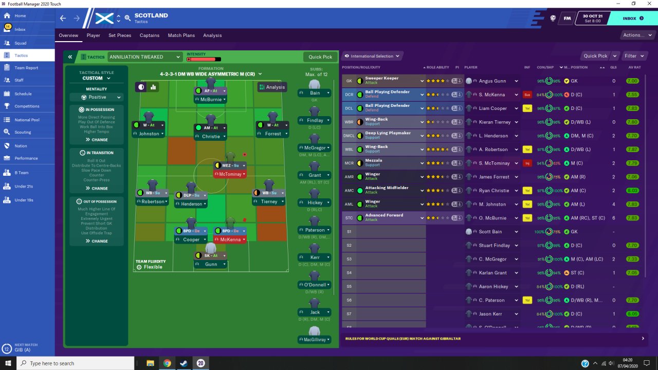 Tweak of TFF's Annihilator tactic. Fun tactic that scores loads of goals.