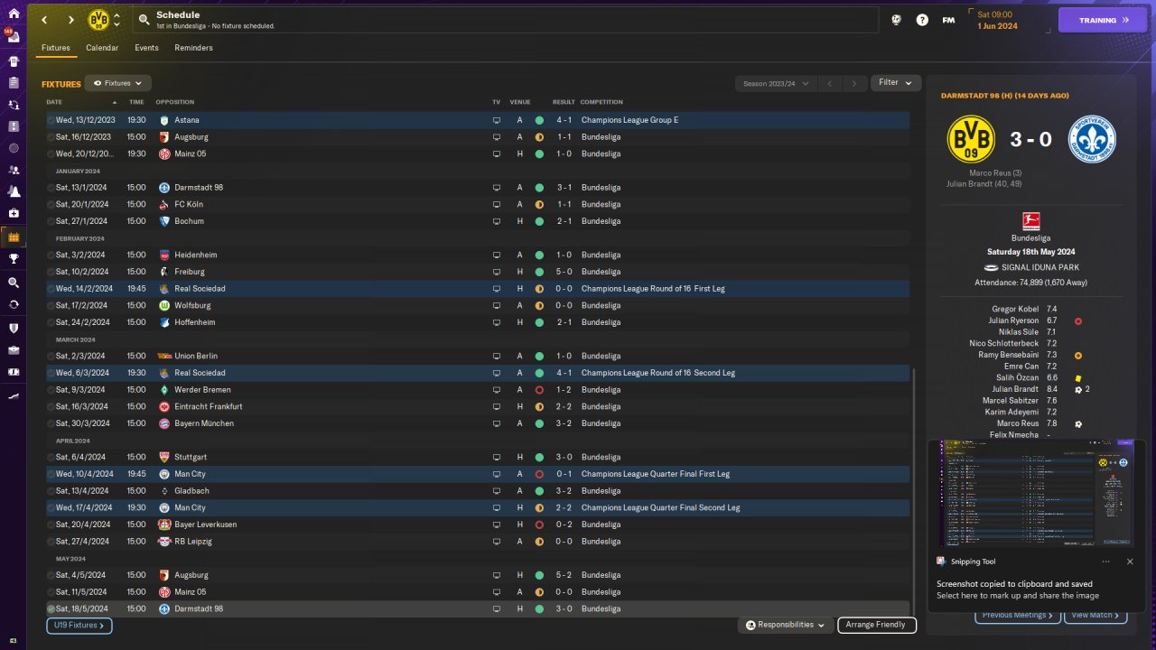 I'm wondering if you could push the physical gains even further if a player plays 40 or 50+ matches