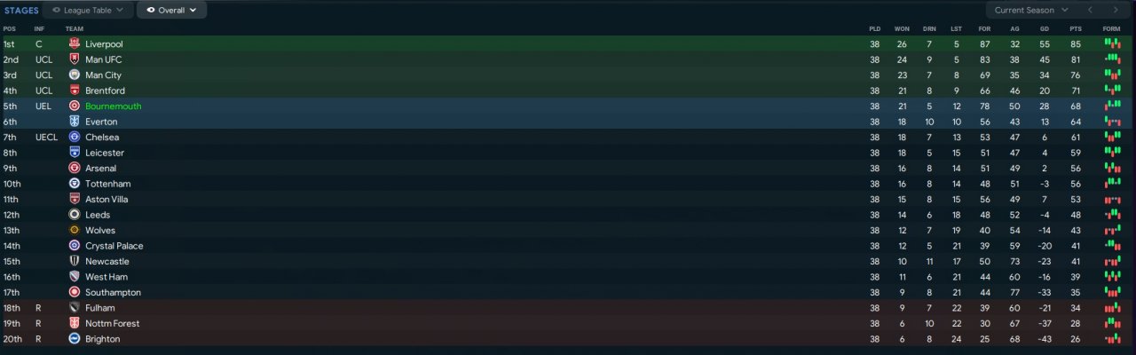 As a note, Wolves always does worse than Bournemouth for me. Wonder if that's common for others.