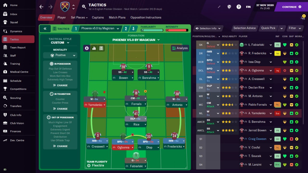 Magician in my second season with West Ham i have played 10 games and tactic just stopped working,i have strugled to get result even against smaller teams,so i decided to try to switch tactic just to see whats happend,and i have restarted season and get 8 wons and 2 loses,dominated in every game again just like in first season wi5h this wonder tactic,so my conclusion is that in such a strong league,if you have dominated in first season,and you dont have players like City and Liverpool,you need to switch tactic,mandatory!
