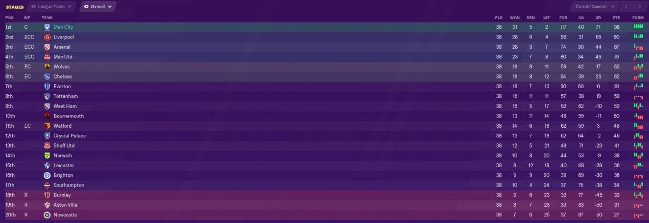 this was my results using man city first season