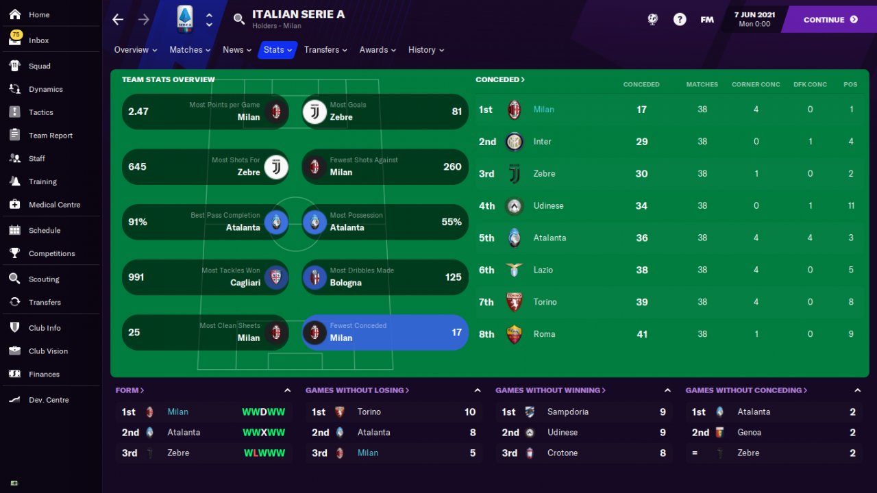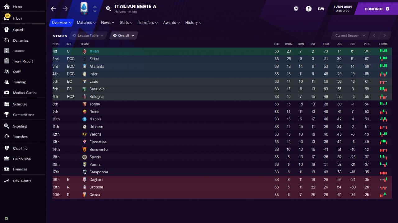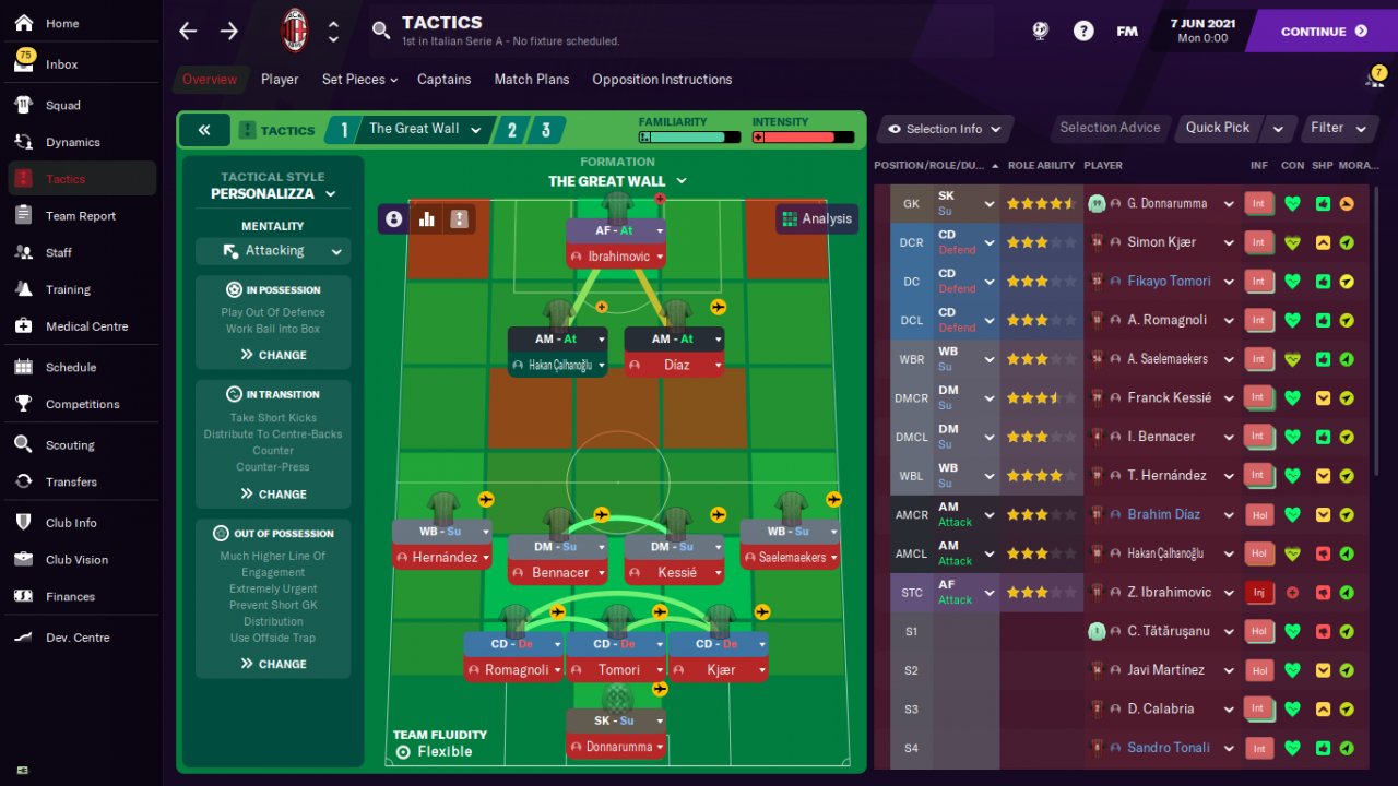 Hi everyone, here is my new tactic that I called The Great Wall cause I won the Italian Serie A with AC Milan in the first season with only 2 defeats and only 17 goals conceded, I also had 25 clean sheet games.