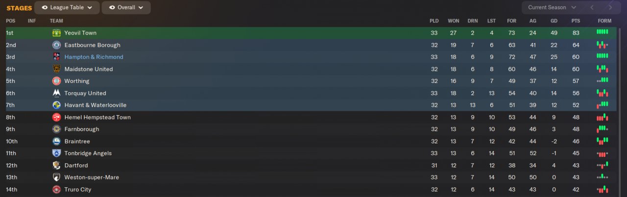 Now I just started a new save in 24.3 and took over in the middle of the season Hampton & Richmond in the lowest tier of English football. After couple of games of trying different tactic, I switched to this one and since then we lost just two games in which we still dominated, but strikers did not finished chances as they should.
