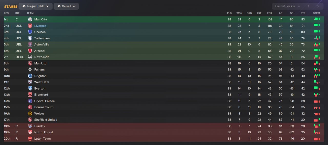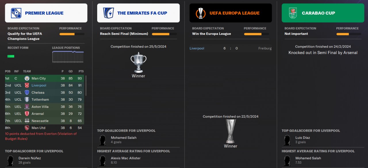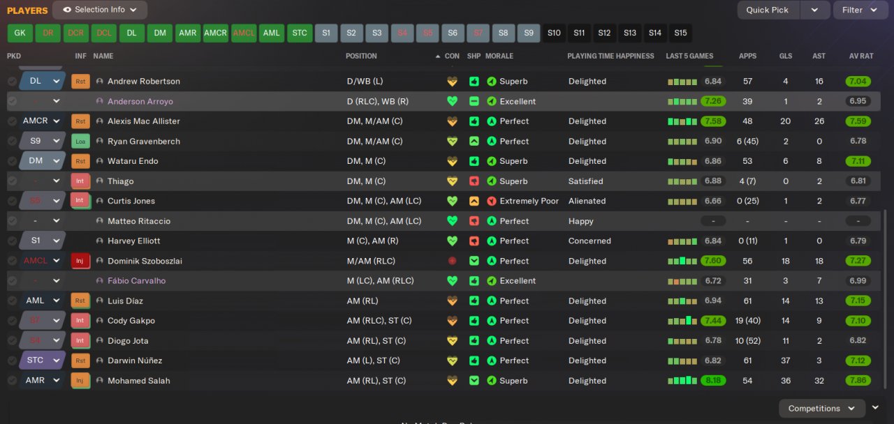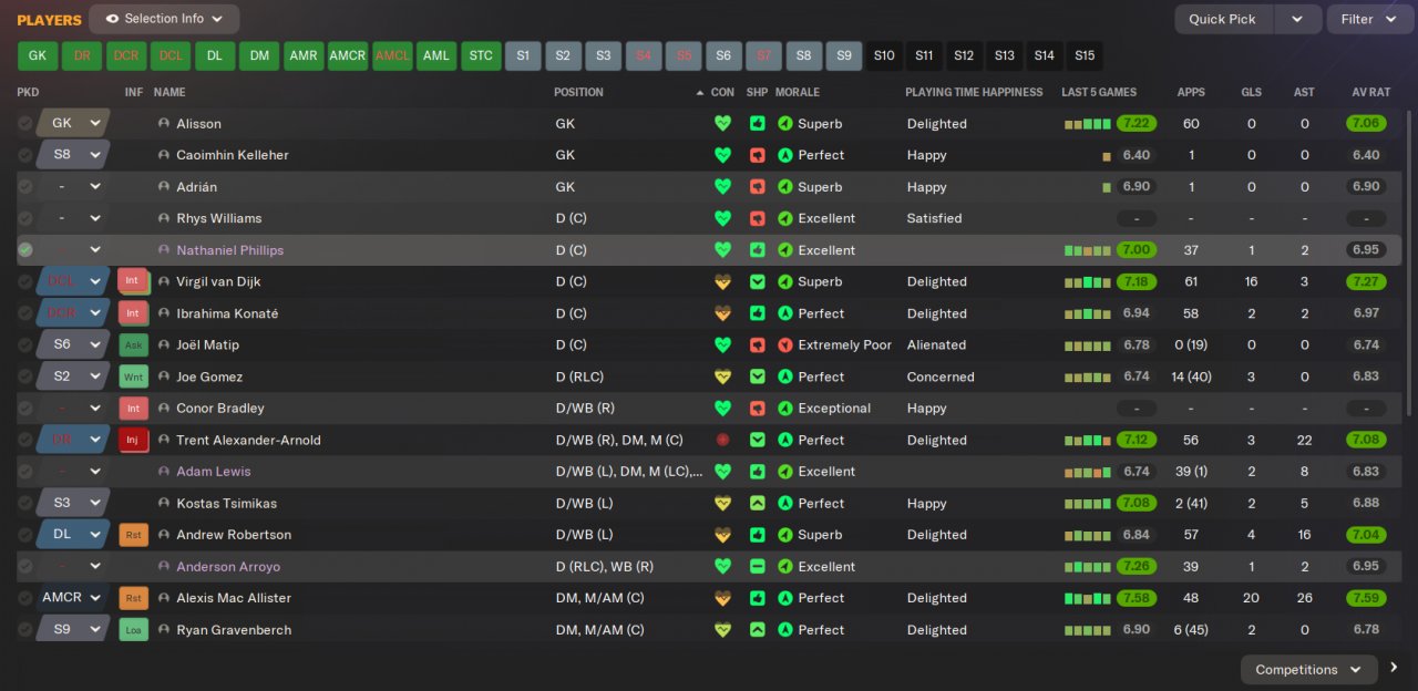To meet the requirements for testing, I did a season with Liverpool (full season on holiday) - stats in attachments.