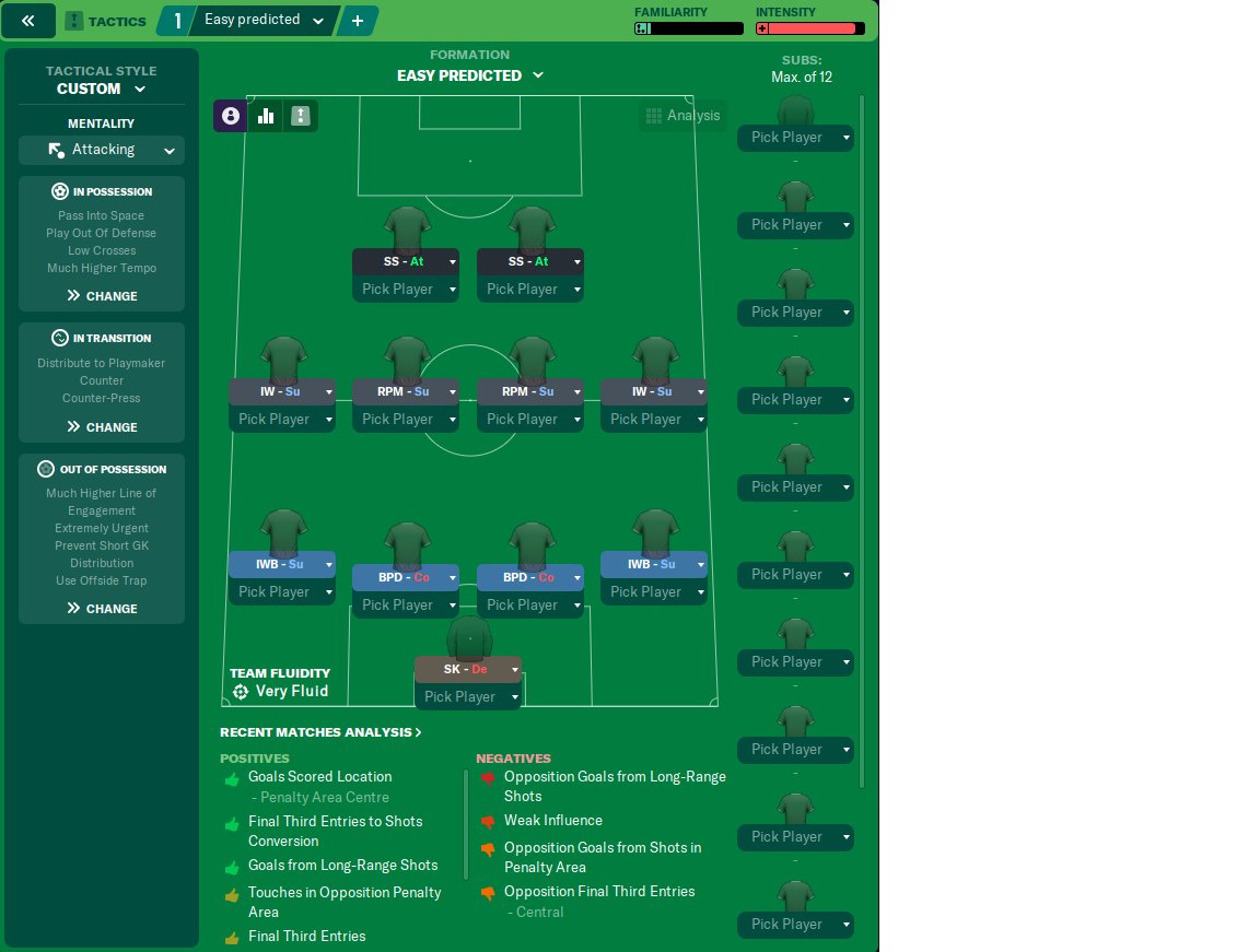 This tactic inspired by all the top strikerless tactic. However, it is emphasize more on thru ball (why we use IW, IWB, Roaming playmakers) to the shadow strikers. Assist will come from everywhere and most of the goals come from the two shadow strikers.