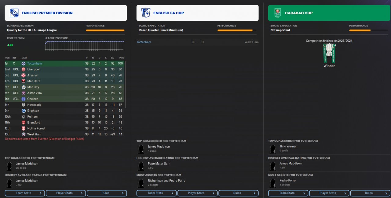 SPURS PL WIN 2 CUPS