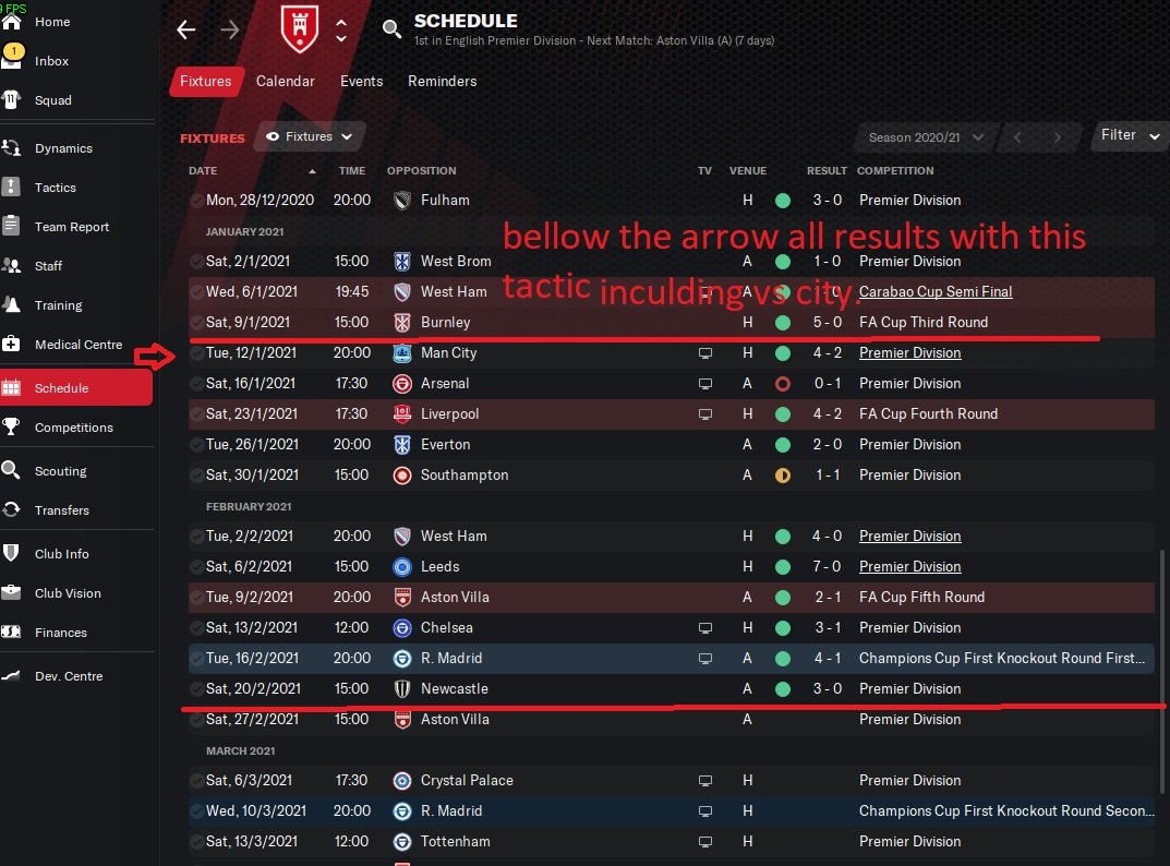 I first tested earlier versions of the tactic on a test arsenal save and averaged about 2.4 ppg in the league after 25 ish games but this was on earlier most certainly inferior versions.Beat real madrid super comfortably away.
